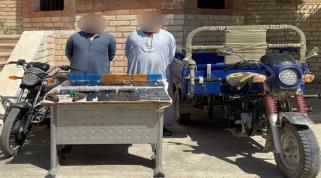 وفى مديرية أمن بنى سويف؛ تم ضبط عنصرين إجراميين "لأحدهما معلومات جنائية" بدائرة مركز شرطة الواسطى وبحوزتهما (10 كيلو جرامات لمخدر الحشيش – 2 فرد خرطوش –عدد من الطلقات – 2 دراجة نارية "بدون لوحات معدنية").