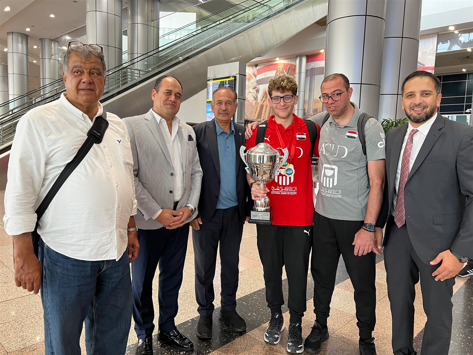 ووصلت بعثة المنتخب الوطني إلي مطار القاهرة الدولي، حيث كان في استقبالهم الدكتور محمد الأمين رئيس اتحاد كرة اليد والدكتور عمرو العدل عضو مجلس إدارة الاتحاد.