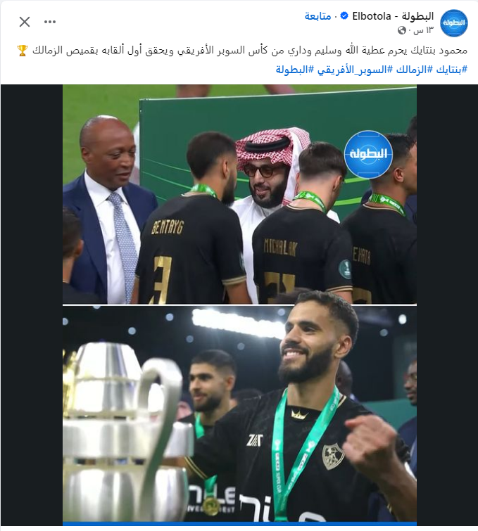 وقال موقع البطولة: “محمود بنتايك يحرم عطية الله وسليم وداري لاعبا الأهلي من كأس السوبر الأفريقي ويحقق أول ألقابه بقميص الزمالك”.