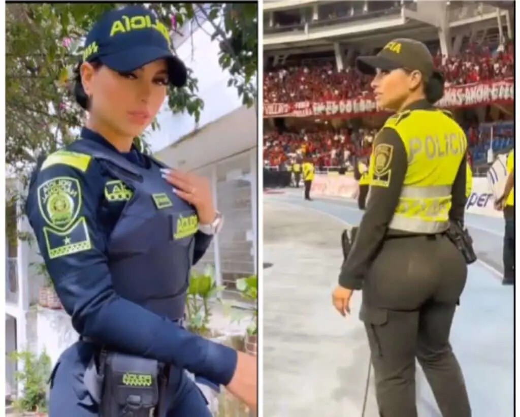 تداول رواد مواقع التواصل الاجتماعي صورة لشرطية أثناء ظهورها في مباريات بـالدوري الكولومبي لكرة القدم.