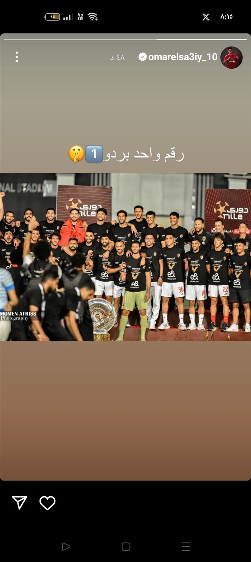 نشر عمر الساعي لاعب النادي الأهلي، صورة عبر استوري انستجرام، للرد على خسارة السوبر الأفريقي أمام الزمالك أمس الجمعة.
