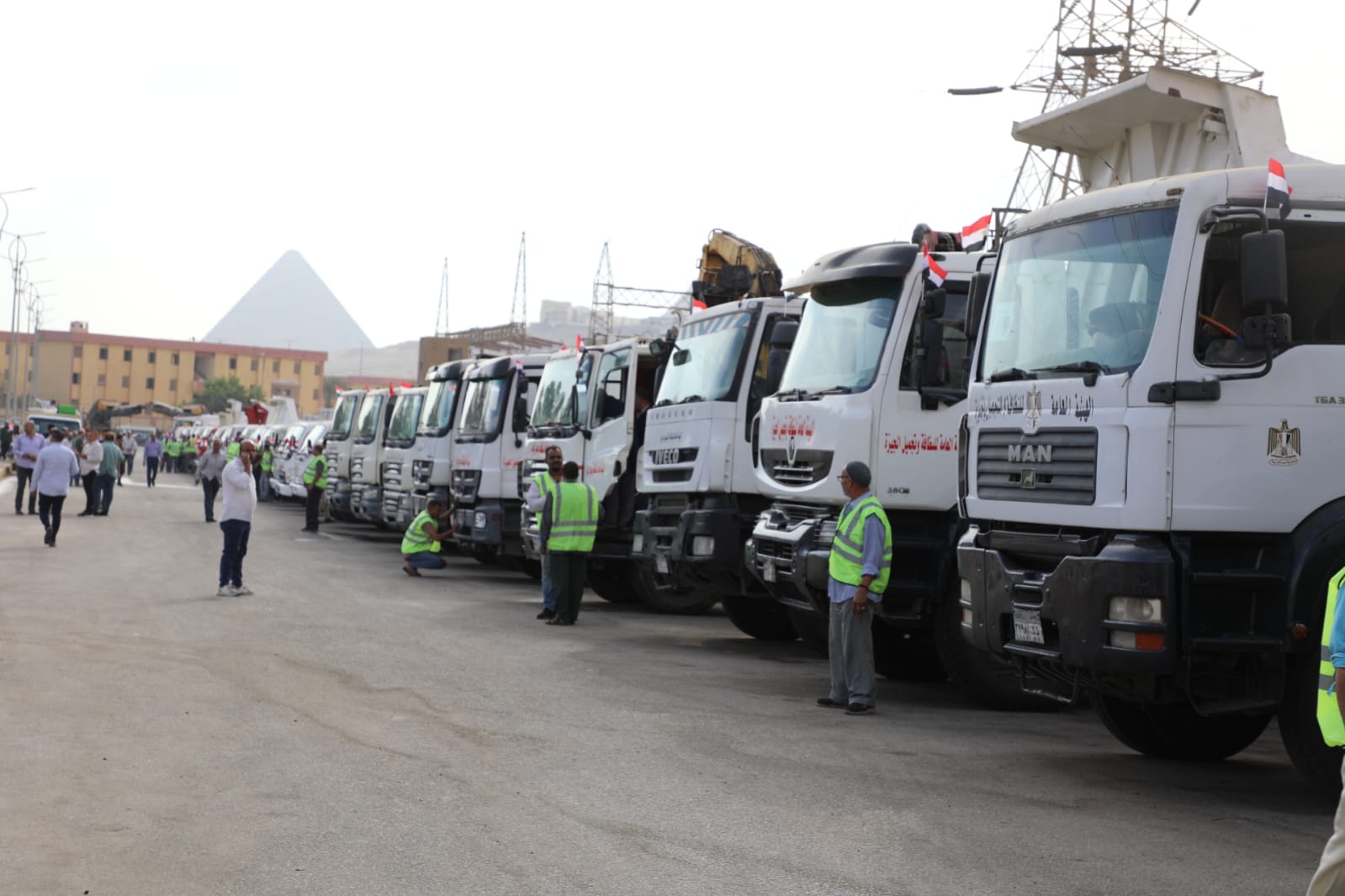 وصرح محافظ الجيزة بأن الإصطفاف يشمل 54 سيارة ومعدة معاد ضمها للمنظومة والتى تتضمن (بلدوزر كساح، ٢ لودر كبير، ٣ لودر صغير، لودر كاتريللر، ٦ قلاب، ٢ كباش، هوك مرسيدس، ٤ سيارة كنس آلى، ديلوفو كنس ألى، مكبس مرسيدس، مكبس فورد، ٢٢ سيارة نصف نقل، ٨ سيارات كسح، سيارة مياه) والتى من شأنها دعم كافة القطاعات داخل المحافظة وزيادة عدد السيارات والمعدات الخاصة بمنظومة الطوارئ.