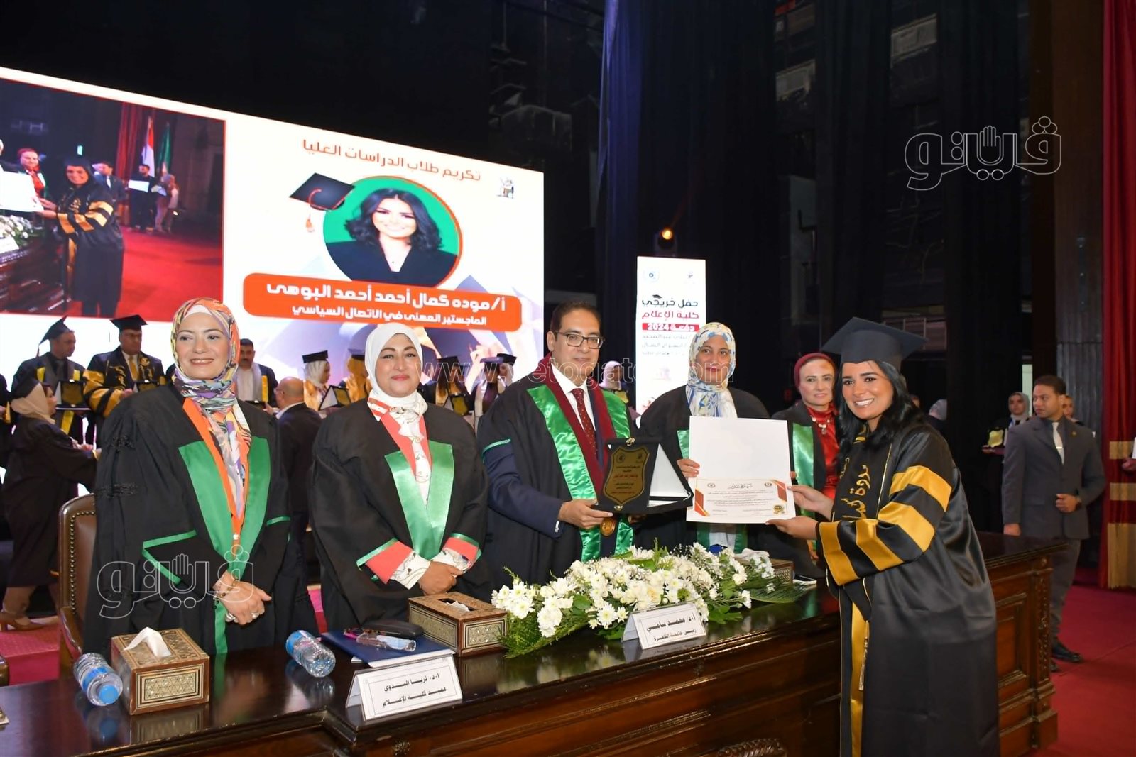 واختتمت مراسم الاحتفال بتكريم خريجى مرحلتى الدراسات العليا والبكالوريوس بأقسام الكلية المختلفة.