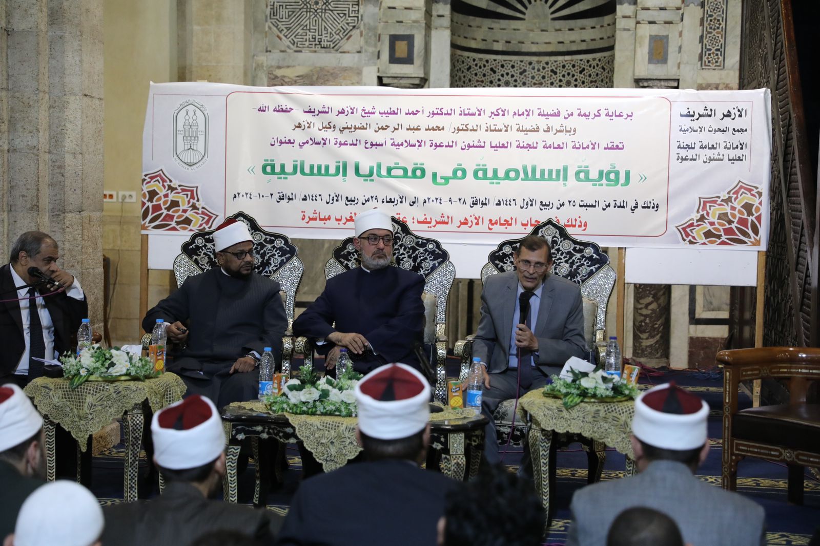 وتنظم الأمانة العامة للجنة العليا للدعوة بمجمع البحوث الإسلامية، فعاليات "أسبوع الدعوة الإسلامي– رؤيةٌ إسلاميَّةٌ في قضايا إنسانيَّةٍ"، يوميا، وعلى مدار هذا الأسبوع في رحاب الجامع الأزهر، وذلك في إطار مبادرة السيد الرئيس عبد الفتاح السيسي، رئيس الجمهورية،" بداية جديدة لبناء الإنسان"، وبتوجيهات فضيلة الإمام الأكبر الدكتور أحمد الطيب شيخ الأزهر، بهدف إعداد خريطة فكرية تتناول بناء الإنسان من جميع جوانبه الفكرية والعقدية والاجتماعية، وترسيخ منظومة القيم والأخلاق والمُثُل العليا في المجتمع، وذلك بمشاركة نخبة من علماء الأزهر الشريف.