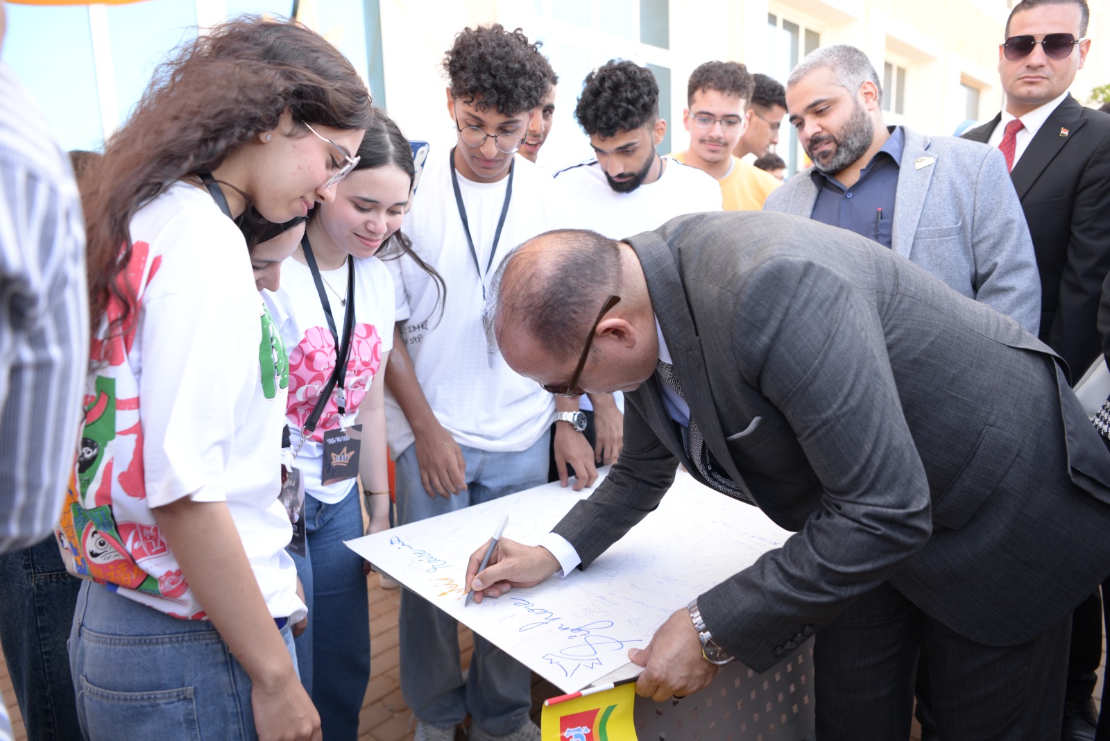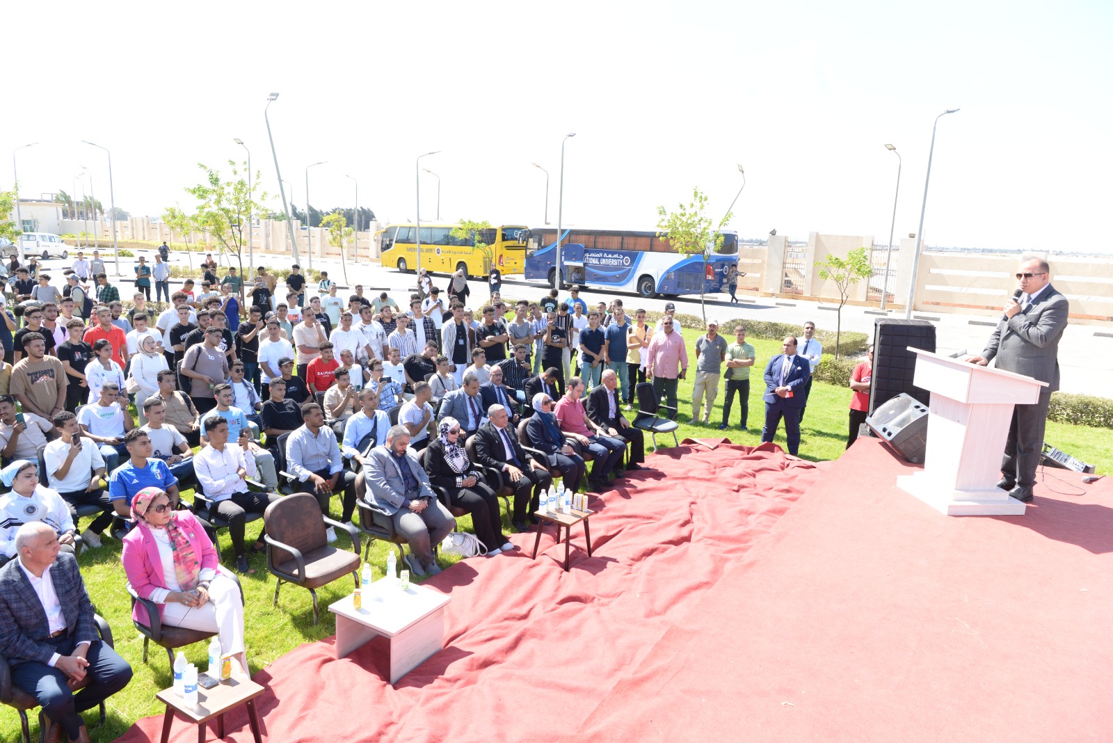 كما وجه كلمة لأبنائه الطلاب بأن الدولة المصرية اهتمت ببناء الإنسان ووفرت لهم فرصة تعليم أفضل وأنها السبيل إلى مستقبل أفضل كما حثهم على الاجتهاد والانتظام فى الدراسة لتحقيق التفوق والمشاركة الفعالة في الانشطة الطلابية والمجتمعية.