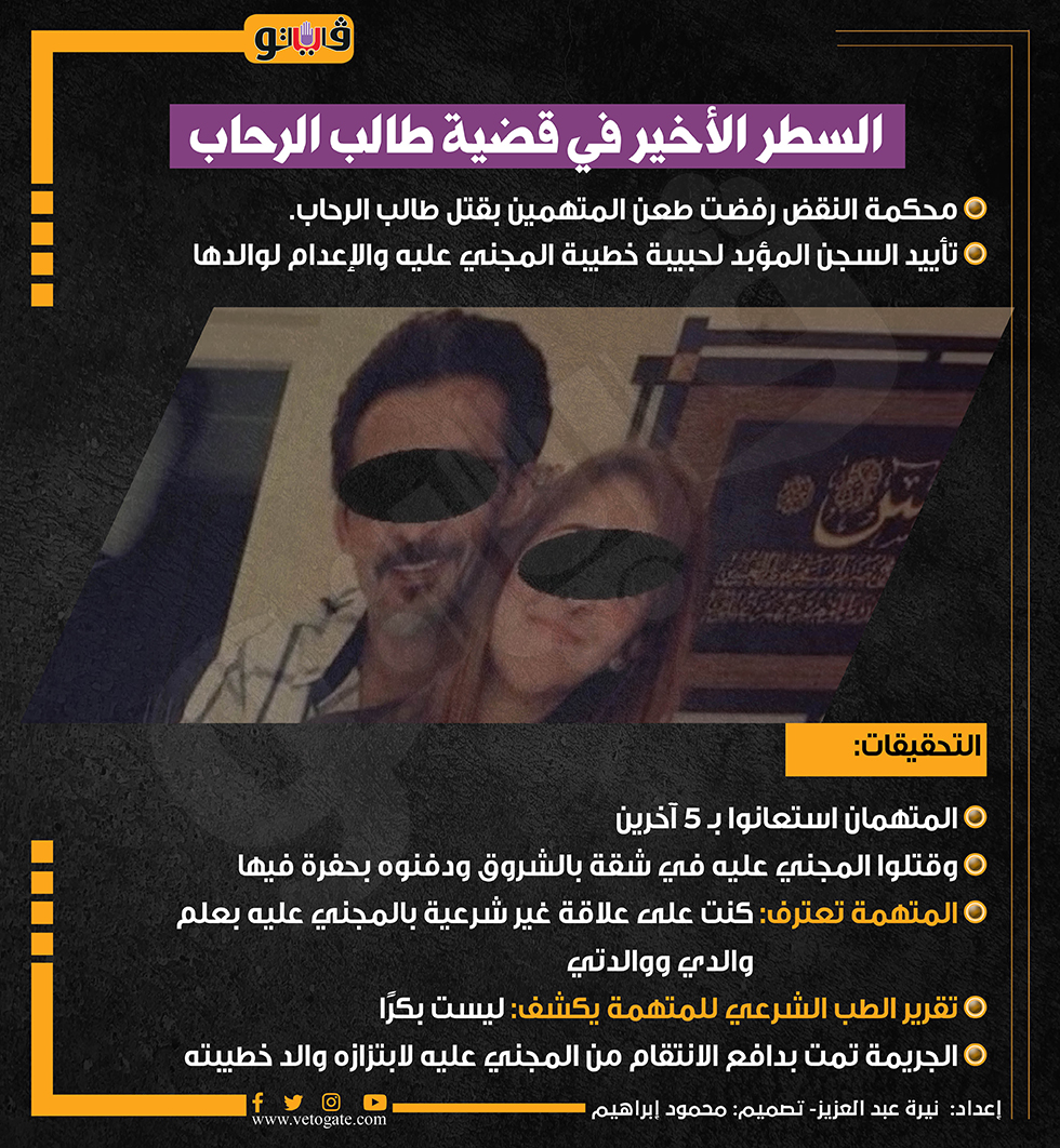 السطر الأخير في قضية طالب الرحاب (إنفوجراف) الثلاثاء 01/أكتوبر/2024 - 08:00 م 10/1/2024 8:00:54 PM المتهمان، فيتو نيرة عبد العزيز شارك طباعة 18 حجم الخط شارك طباعة محكمة النقض طالب الرحاب قتل طالب الرحاب