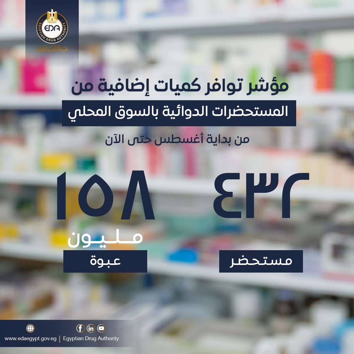 أعلنت هيئة الدواء المصرية عن ضخ ١٥٨ مليون عبوة خاصة لـ٤٣٢ مستحضر دواء في السوق.