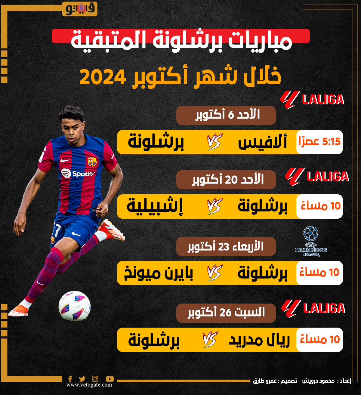 مباريات برشلونة المتبقية خلال شهر أكتوبر 2024 (إنفوجراف) الجمعة 04/أكتوبر/2024 - 01:01 م 10/4/2024 1:01:00 PM برشلونة،فيتو محمود درويش تصميم :عمرو طارق شارك طباعة 18 حجم الخط شارك طباعة برشلونة دوري ابطال اوروبا ألافيس وبرشلونة الدوري الإسباني برشلونة وبايرن ميونخ