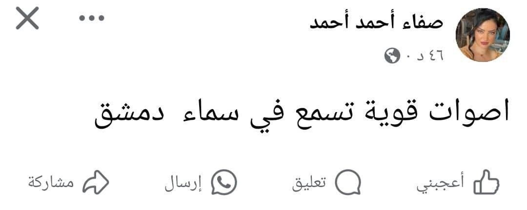 وذكرت إذاعة "شام إف إم" في دمشق أن دوي انفجارات متتالية سمع في المدينة والدفاعات الجوية تعاملت مع أهداف معادية في محيط العاصمة وسط تصاعد لأعمدة الدخان في محيط منطقة المزة.