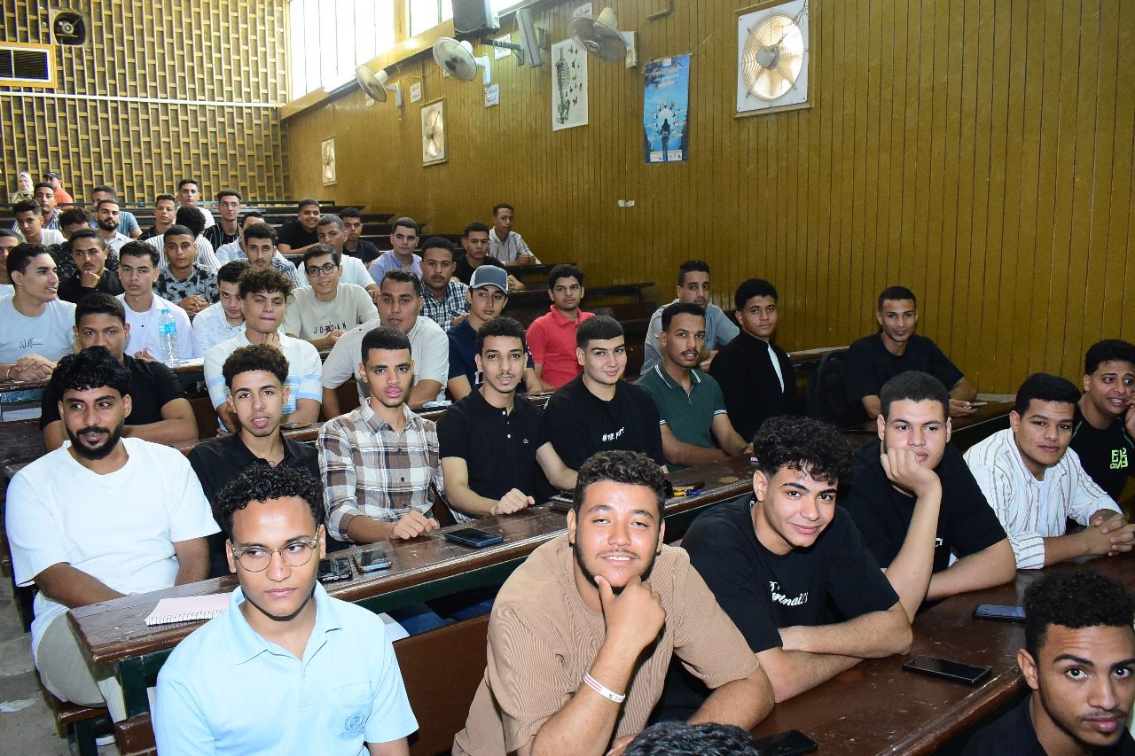 وخلال الجولة أوصى رئيس الجامعة في كلمته للطلاب بالاستفادة من كافة الخدمات التى تقدمها الكليات لطلابها، والمشاركة فى الأنشطة المختلفة التي تنفذها الجامعة في إطار مبادرة بداية والتي تساعدهم علي صقل مهاراتهم وتأهيليهم بالمعارف اللازمة، الي جانب اندماجهم مع زملائهم من الكليات المختلفة، مهنئنًا الطلاب الجدد ببدء العام الدراسي الجديد، واستطلع آراءهم حول مدى رضاهم عن العملية التعليمية، موجهًا جميع الطلاب بضرورة الاجتهاد فى الدراسة العلمية والعملية وتعزيز طاقاتهم الإبداعية وتنمية مواهبهم ونشر روح التعاون بينهم.