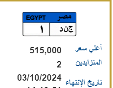 وجاءت اللوحة المعدنية " ج ن د 1 " بسعر 515 ألف جنيه ويتنافس عليها شخصان، واللوحة المعدنية " ن م ج 1 " بسعر 375 ألف جنيه.