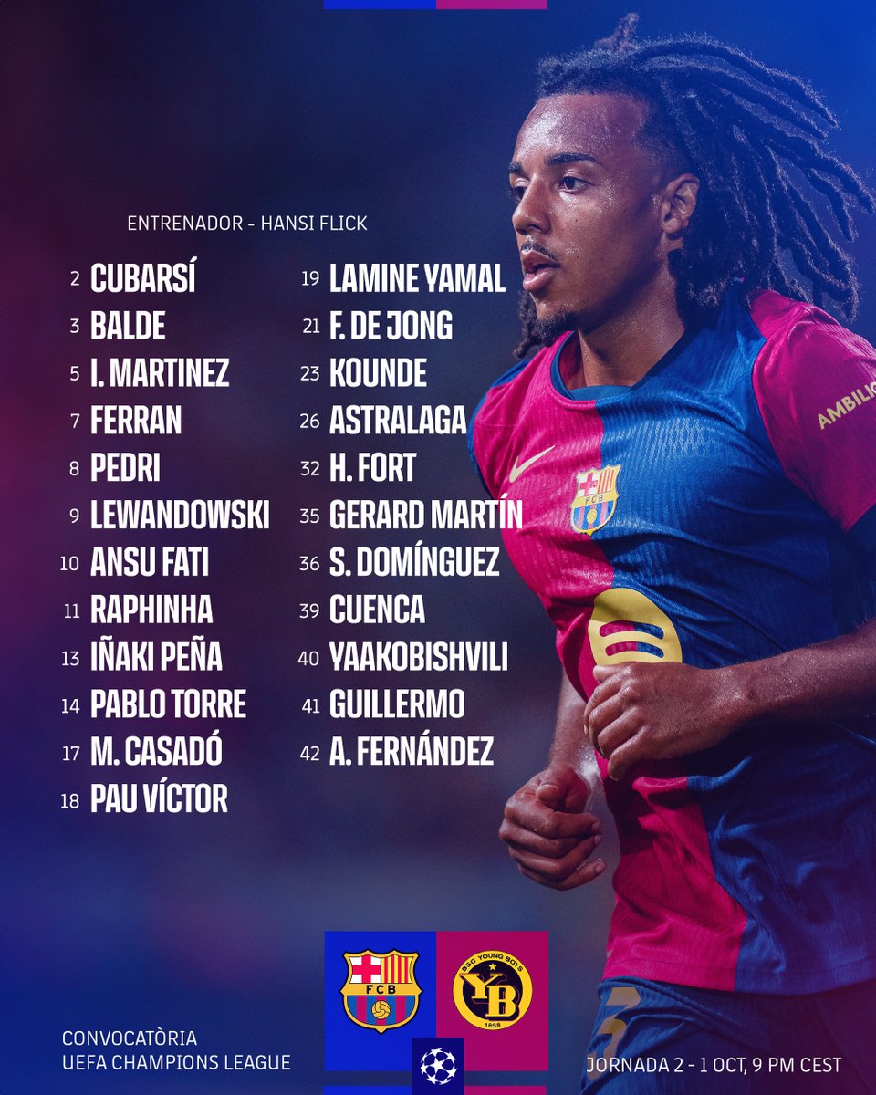 دوري أبطال أوروبا، يستعد برشلونة، بقيادة المدرب هانز فليك، لمواجهة يونج بويز على أرضية ملعب "لويس كومبانيس" ضمن الجولة الثانية من بطولة دوري أبطال أوروبا.