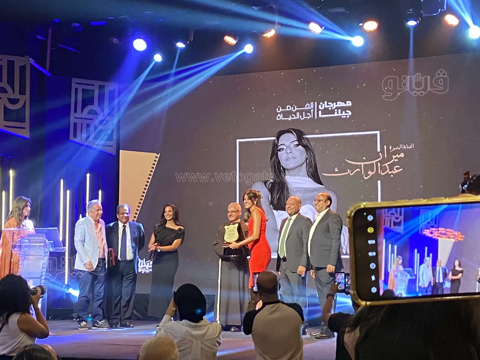 كما كرم المهرجان أيضا الفنانة ميران عبد الوارث على مجمل أعمالها وهي ابنة الفنان أحمد عبد الوارث وأهدت الفنانة ميران عبد الوارث جائزتها لوالدها أحمد عبد الوارث.