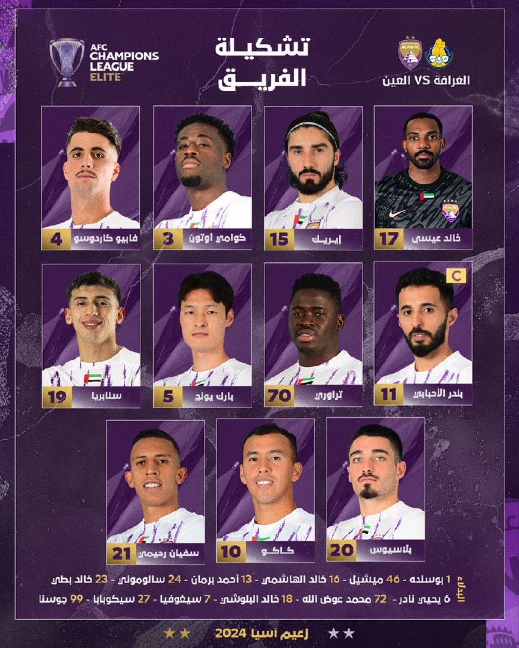 خط الدفاع: بندر الأحبابي، فابيو كاردوسو، كوامي، إيريك.