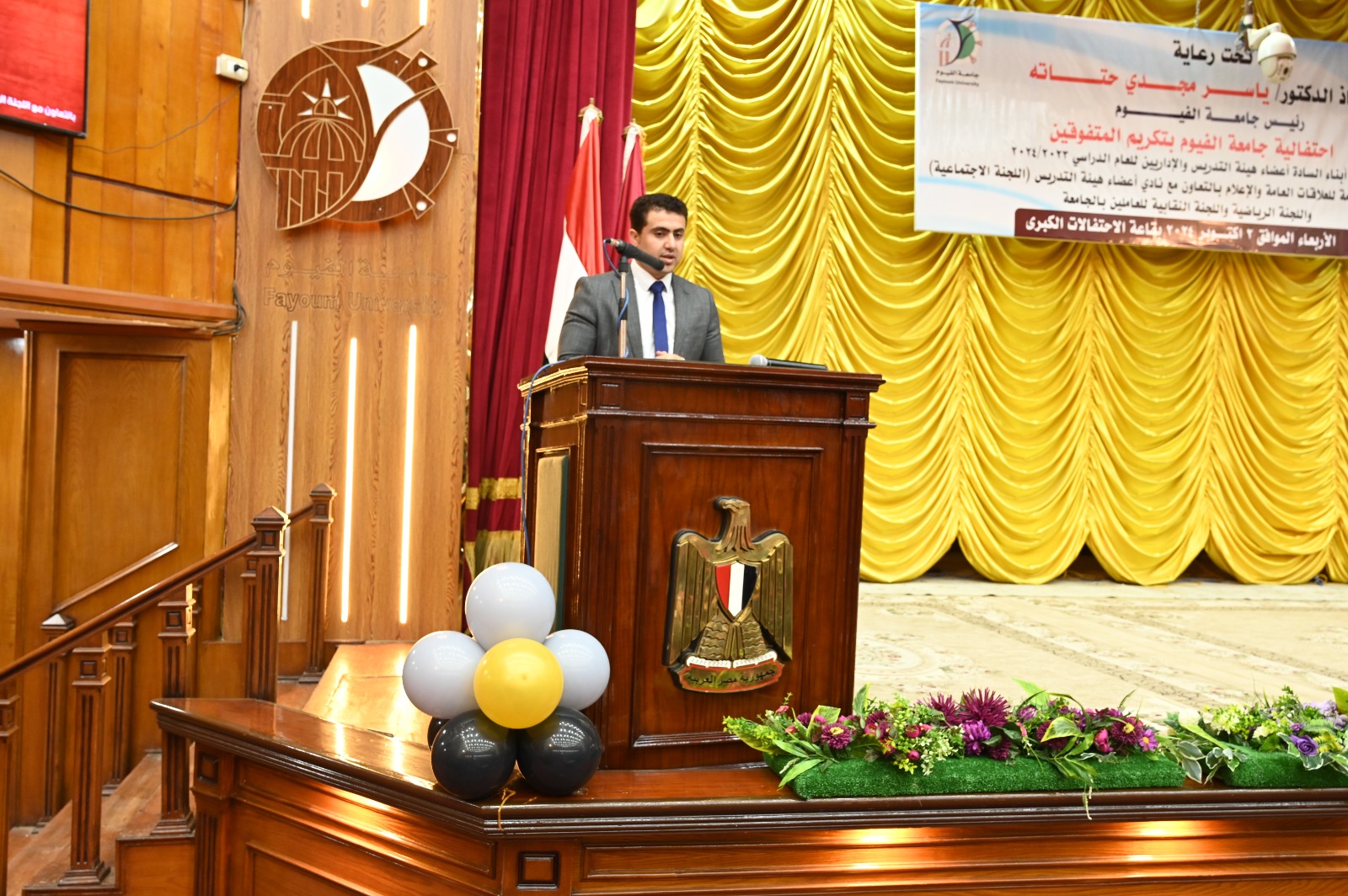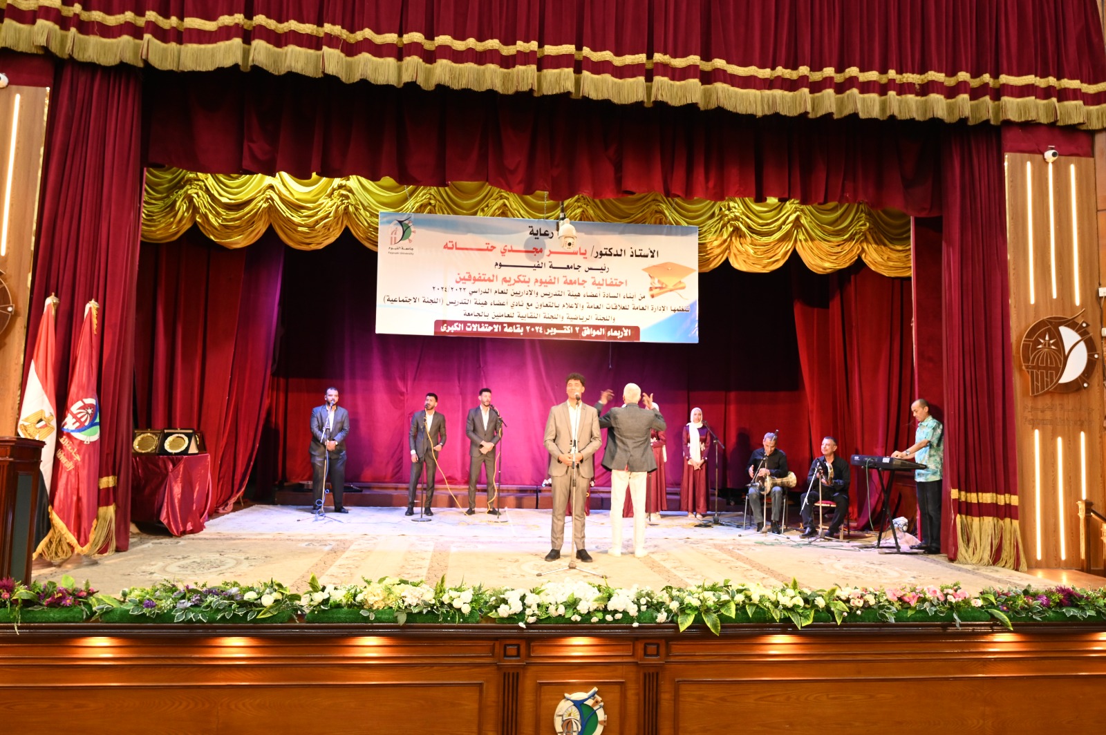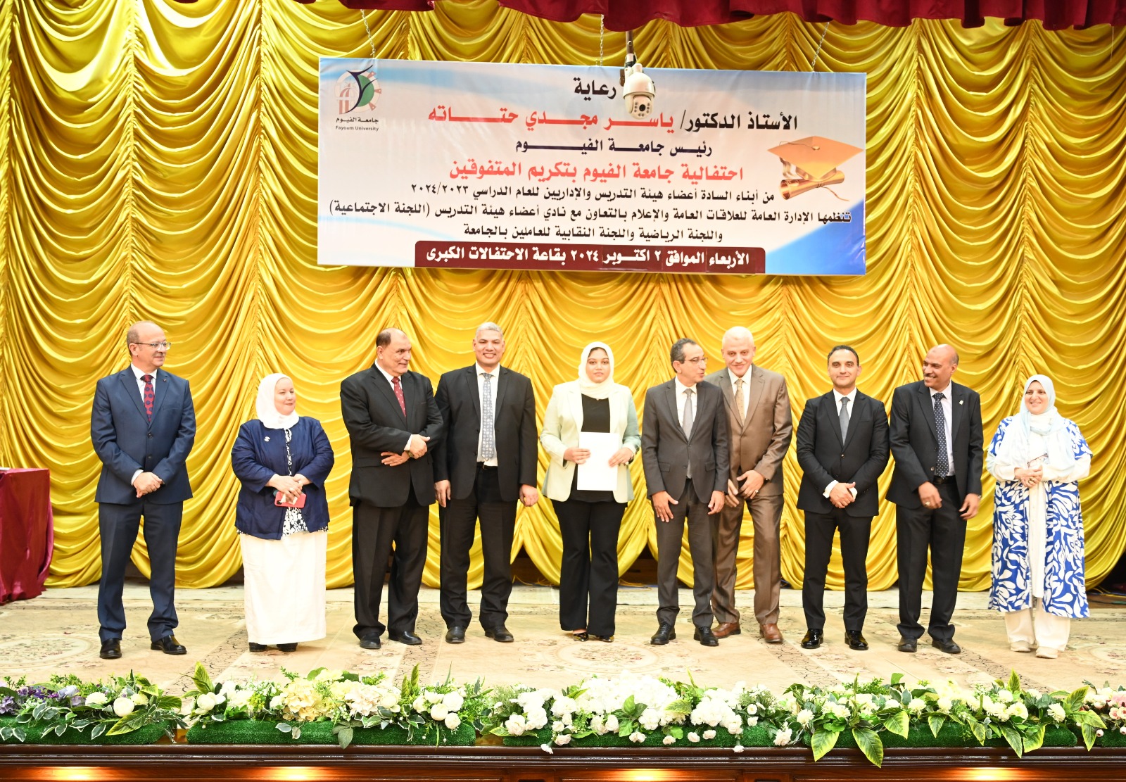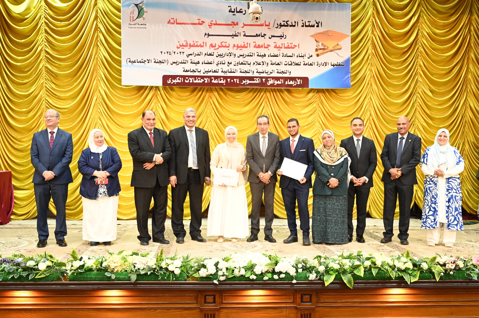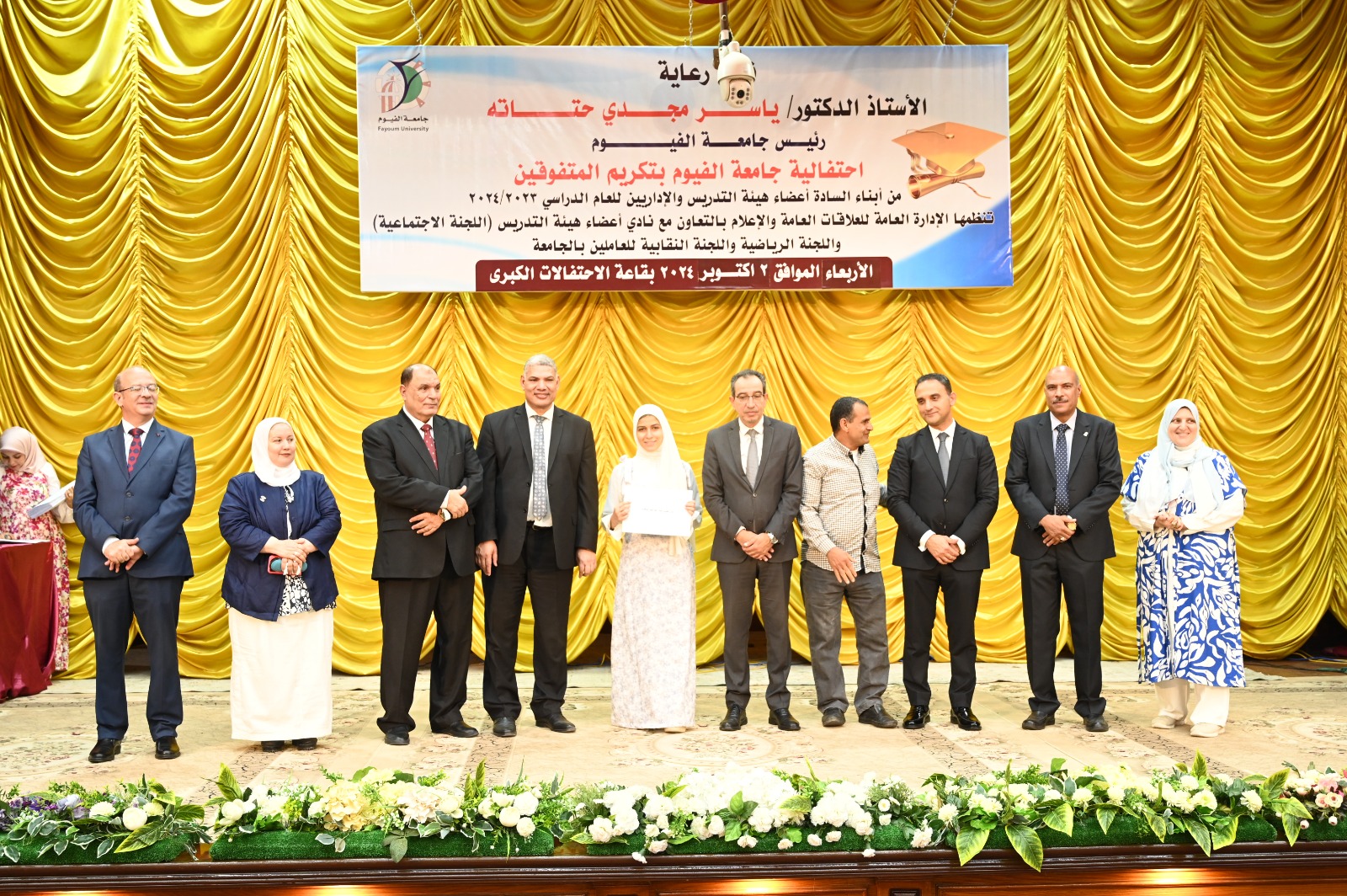 وتضمنت الاحتفالية تكريم 102 من المتفوقين فى مراحل التعليم المختلفة (الجامعية والثانوية والإعدادية) من أبناء أعضاء هيئة التدريس والإداريين بجامعة الفيوم، كما تضمنت تقديم عرض فني لمنتخب كورال الجامعة بقيادة المايسترو وائل حمدي، واهدي نادي أعضاء هيئة التدريس درع النادي الي رئيس الجامعة ونوابة ورئيس اللجنة الاجتماعية بالنادي، كما تم إهداء شهادات التقدير للمتفوقين في المرحلة الجامعية والثانوية والإعدادية، وتكريم القائمين على تنظيم الاحتفالية من نادي أعضاء هيئة التدريس، والإدارة العامة للعلاقات العامة والإعلام، وأعضاء اللجنتين الرياضية والنقابية.