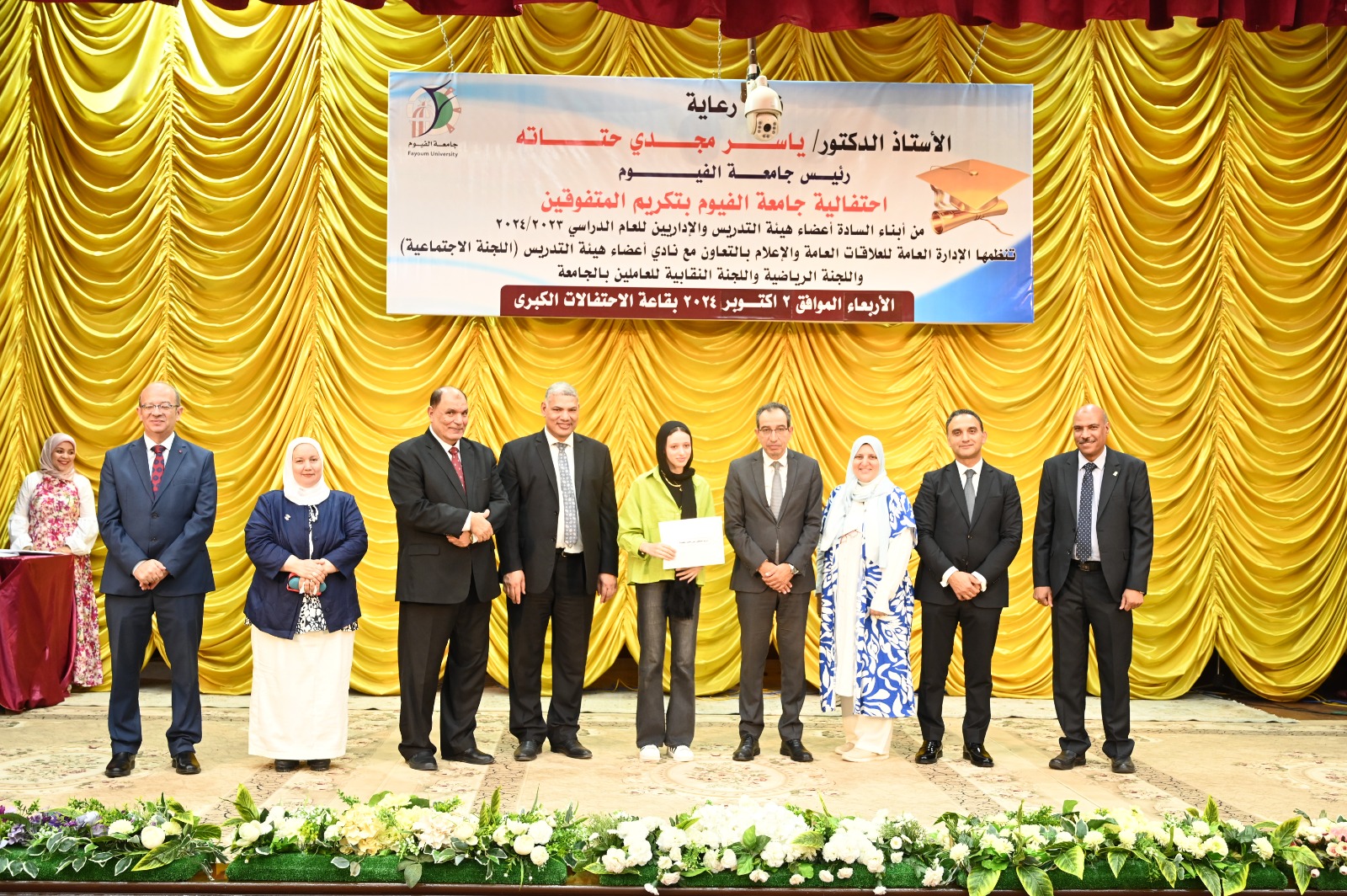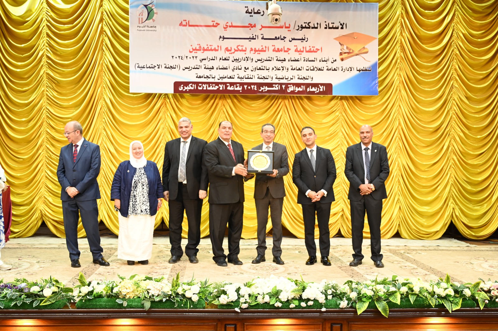 جامعة الفيوم تكرم 102 من أبناء هيئات التدريس والإداريين المتميزين