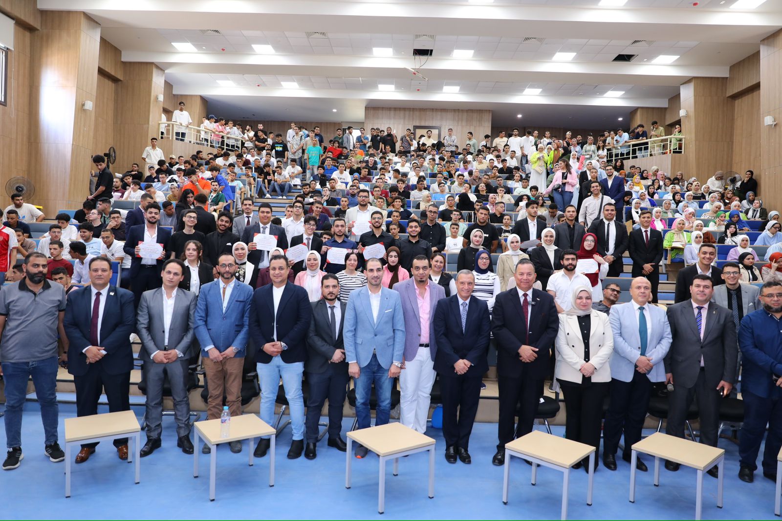 كما تم تسليم شهادات التقدير للطلاب المتفوقين والمتميزين في الأعوام السابقة للجامعة، وتم التقاط الصور التذكارية.