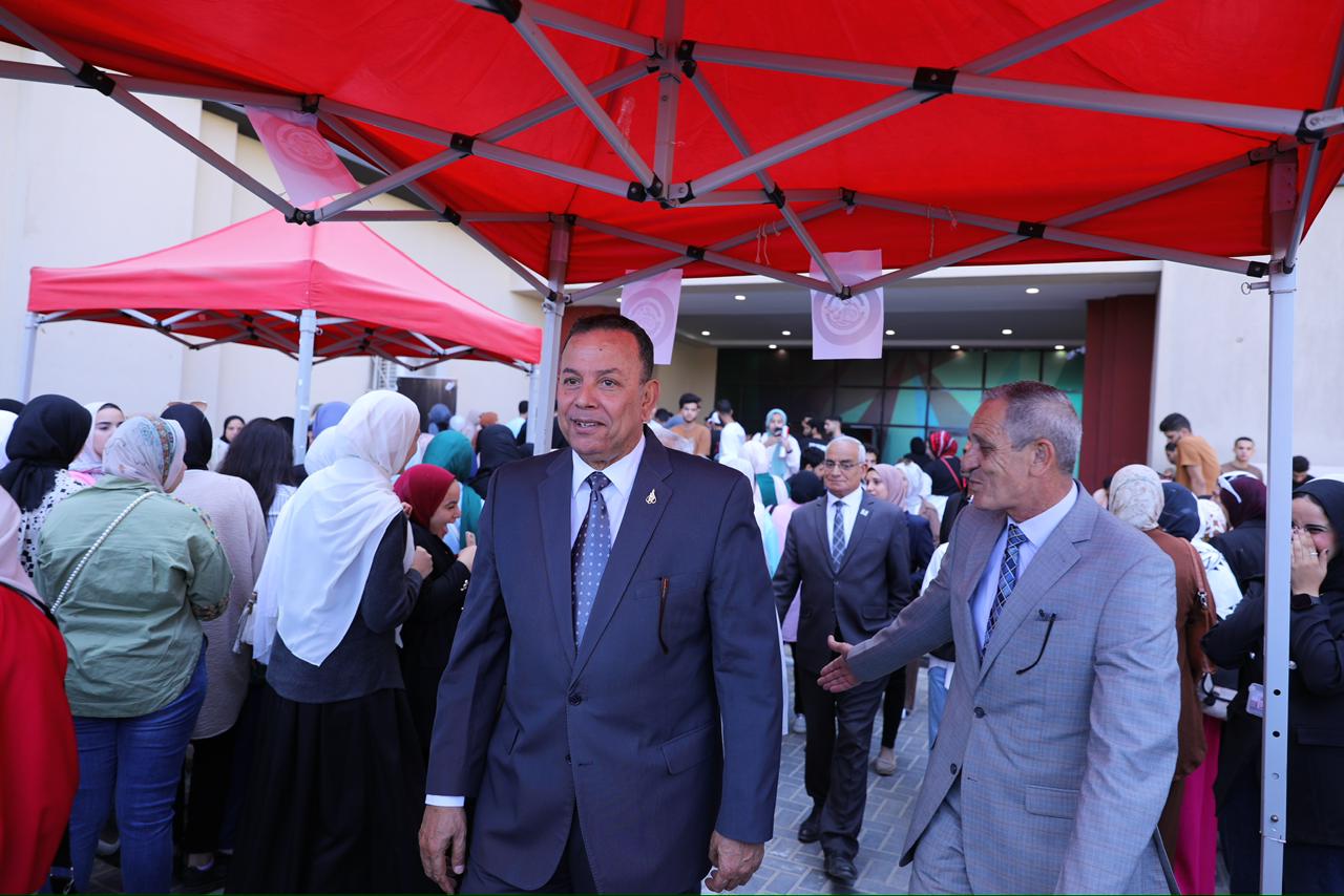 وقد رحب رئيس الجامعة بالطلاب الجدد وقدم لهم التهنئة بالعام الجامعي الجديد، وحثهم على المشاركة في الأنشطة الطلابية لتنمية مهاراتهم، وقدم لهم تعريفًا ببرامج الكليات، وحثهم على الجد والاجتهاد متمنيًا لهم التوفيق والسداد.