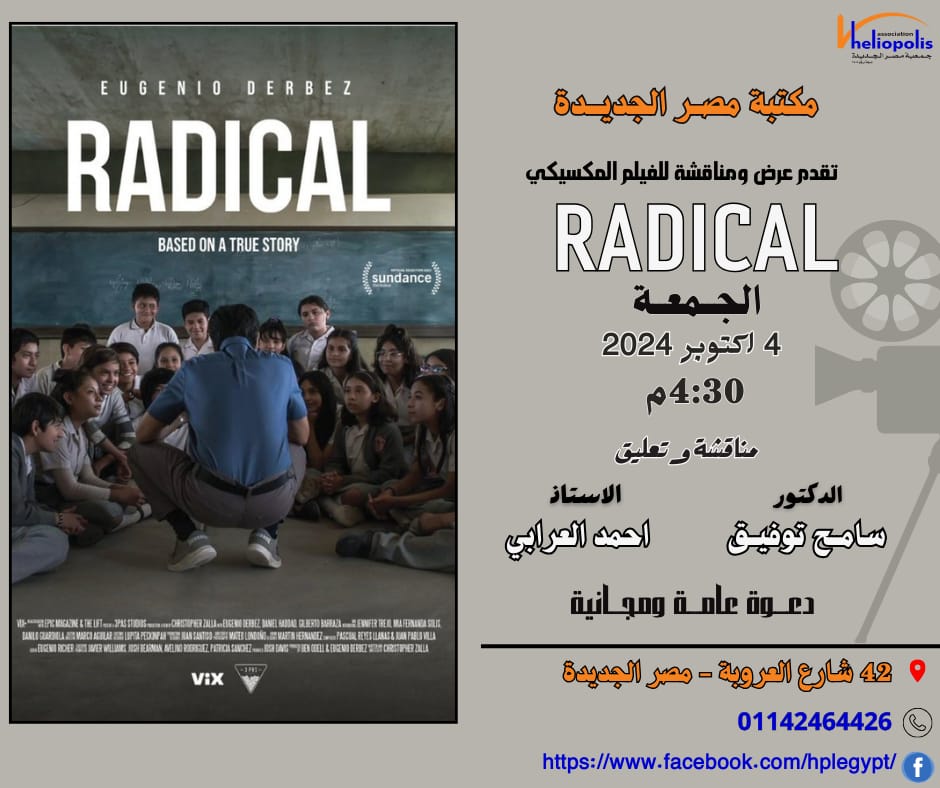 عرض ومناقشة الفيلم المكسيكي "راديكال" فى مكتبة مصر الجديدة العامة غدا