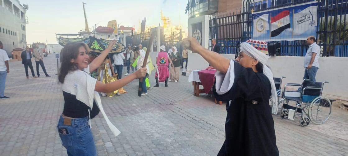 وخلال مراسم الاستقبال، تم تقديم عروض فنية لفرقة الفنان زكي حسن للفنون الشعبية، وفريق الأطفال بقيادة هالة بطيشة، والتى نالت إعجاب السائحين الذى تفاعلوا معها بالرقص وترديد الأغانى.