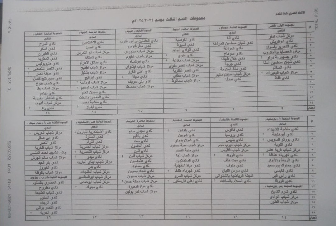 دوري القسم الثالث، كشف الاتحاد المصري لكرة القدم عن مجموعات دوري القسم الثالث للموسم الجديد 2024 -2025.