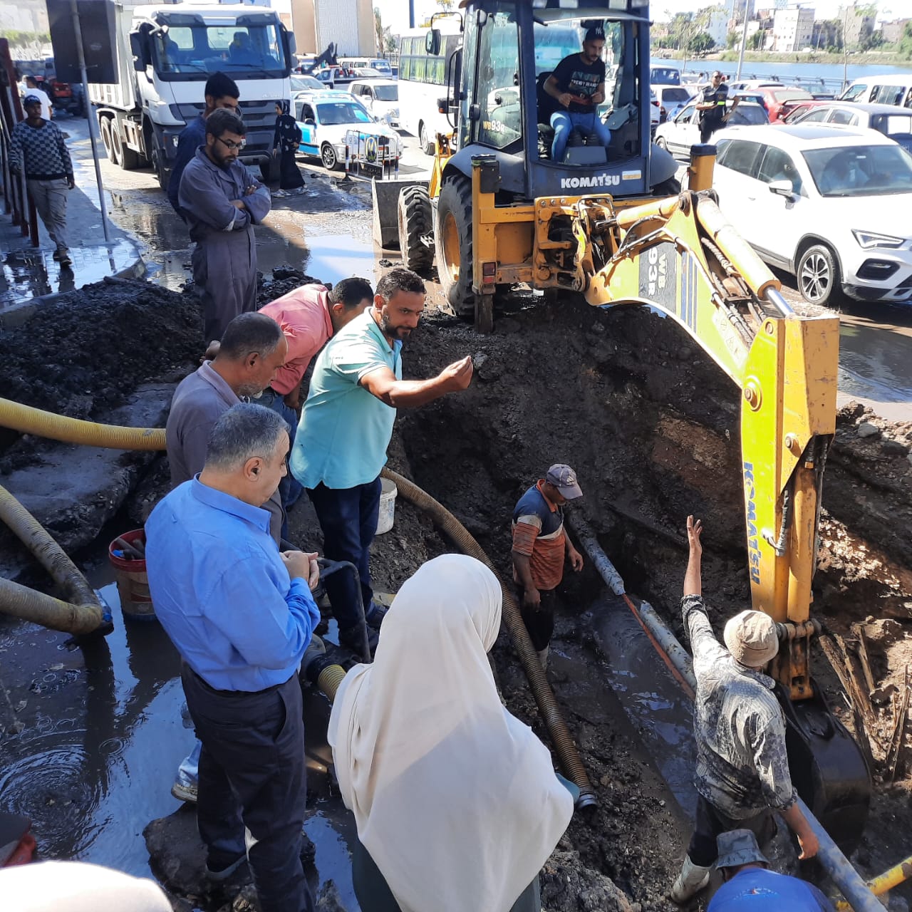 كسر مفاجئ بخط مياه في منطقة كورنيش النيل بدمياط