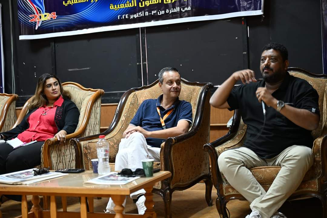 من جهته أوضح د. حسام محسب أن قصور الثقافة أتاحت له الفرصة للتعرف على فرق الفنون الشعبية، مشيرا أنه بدأ حياته الفنية كراقص فنون شعبية ثم مدرب، موضحا أن أول إشكالية يواجهها الفن الشعبي هي الخلط بين دور المصمم والمخرج والمدرب.