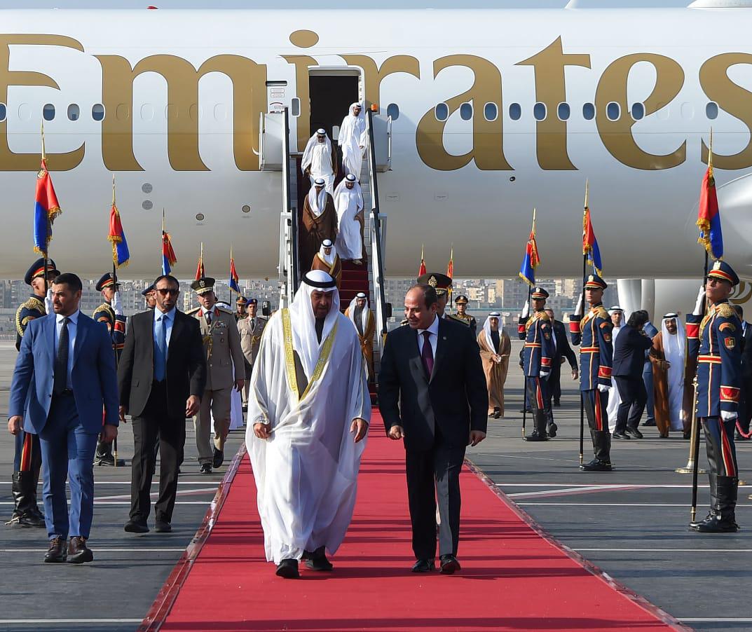 وقال الرئيس عبد الفتاح السيسي: "أخي الحبيب والصديق الحبيب الشيخ محمد بن زايد آل نهيان رئيس دولة الإمارات العربية الشقيقة أرحب بك وأشكرك على إنك أصريت تكون موجود معانا في حفل الأكاديمية العسكرية برغم مشاغلك، ولكن وجودك معانا شرف كبير لينا وحاجة تسعدنا، ربنا يحفظك ويحفظ بلادنا من كل شر وسوء".