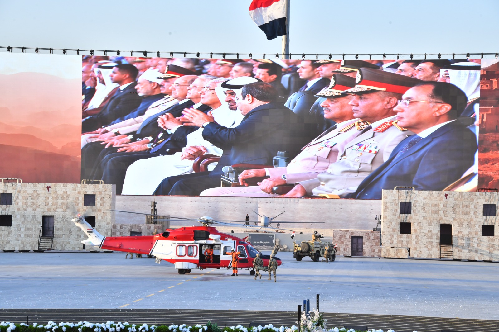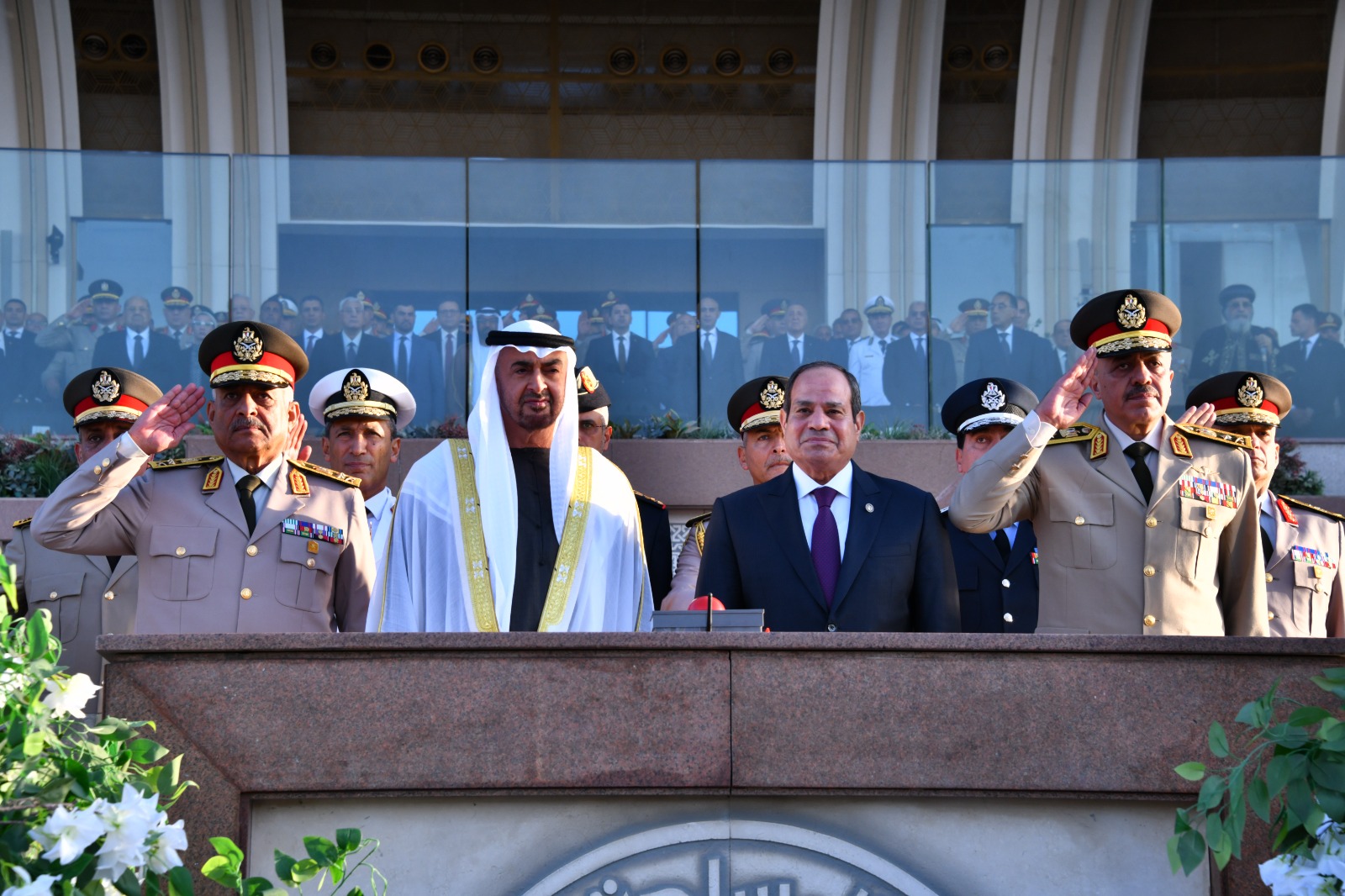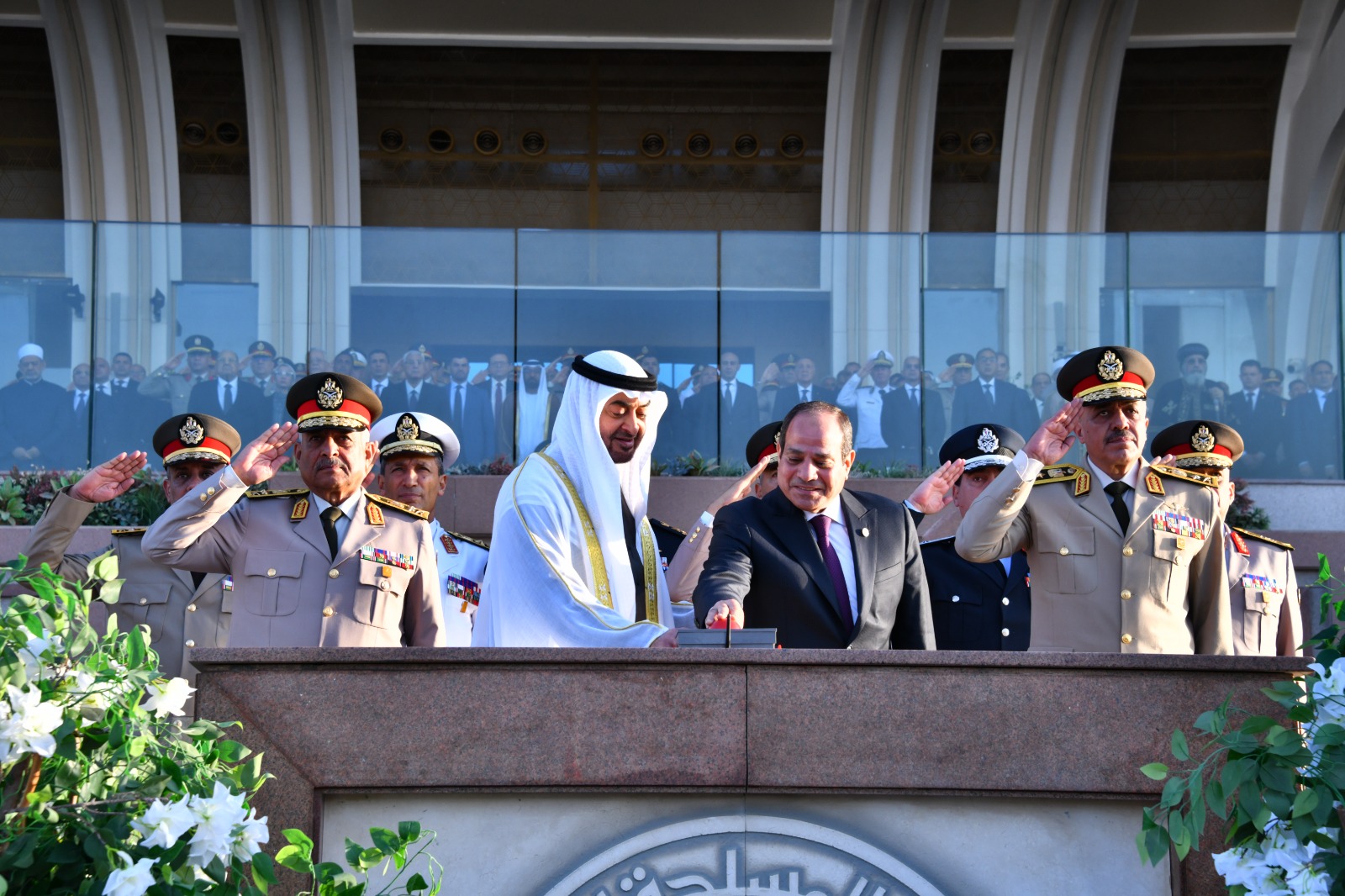 شهد الرئيس عبد الفتاح السيسي والشيخ محمد بن زايد رئيس دولة الإمارات العربية المتحدة، اليوم الخميس حفل الأكاديمية العسكرية المصرية لتخريج دفعات جديدة من طلابها لعام 2024