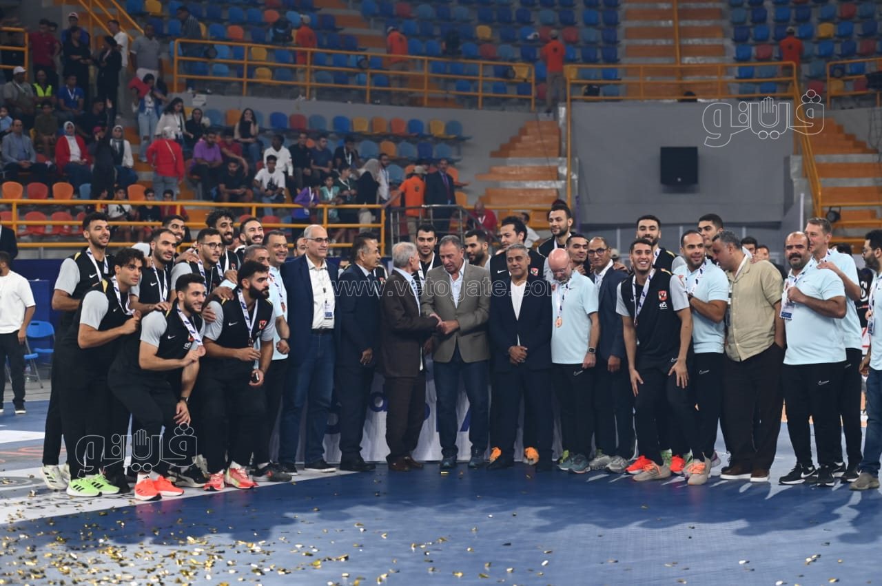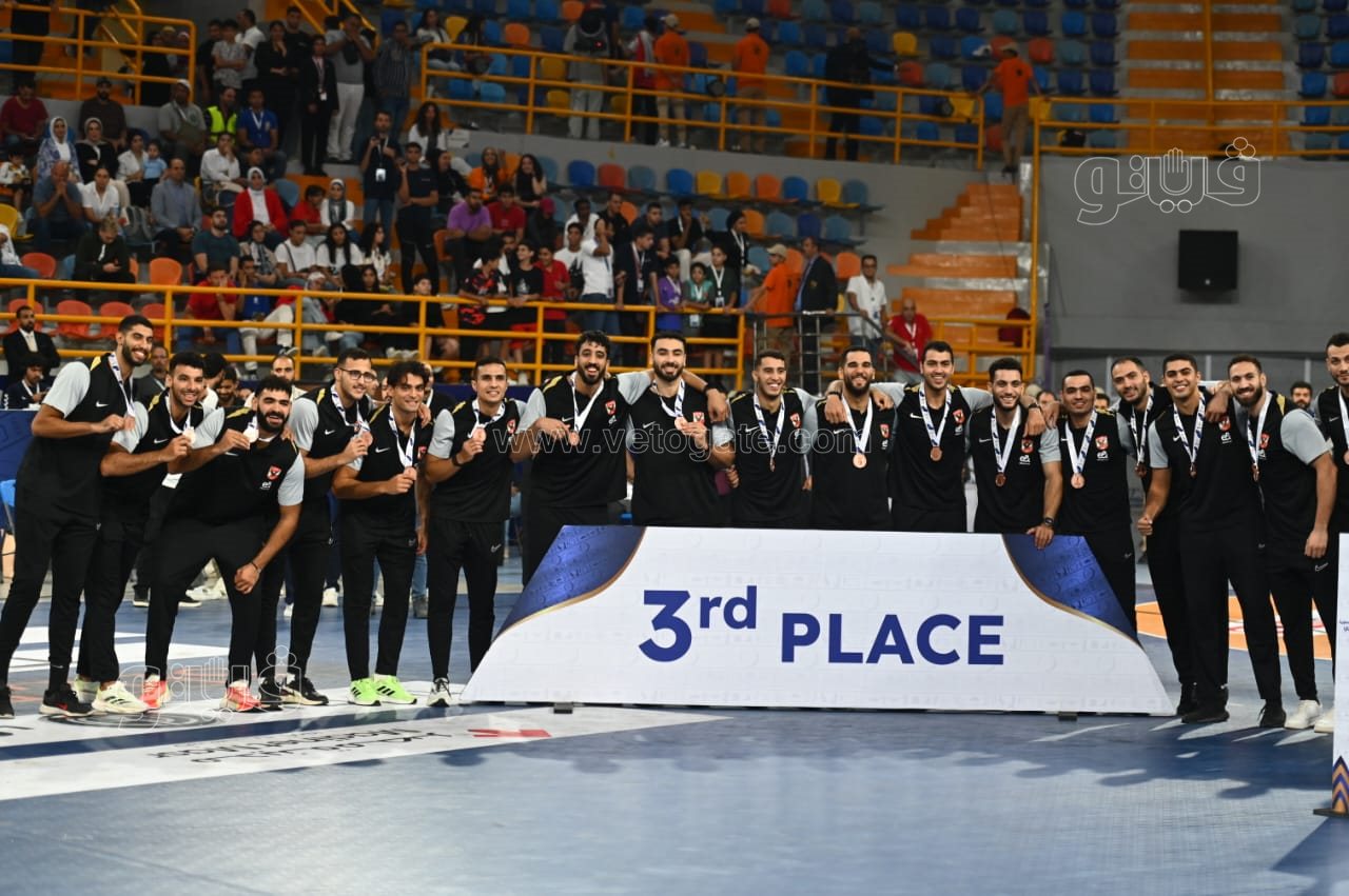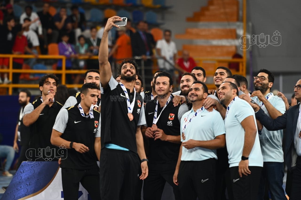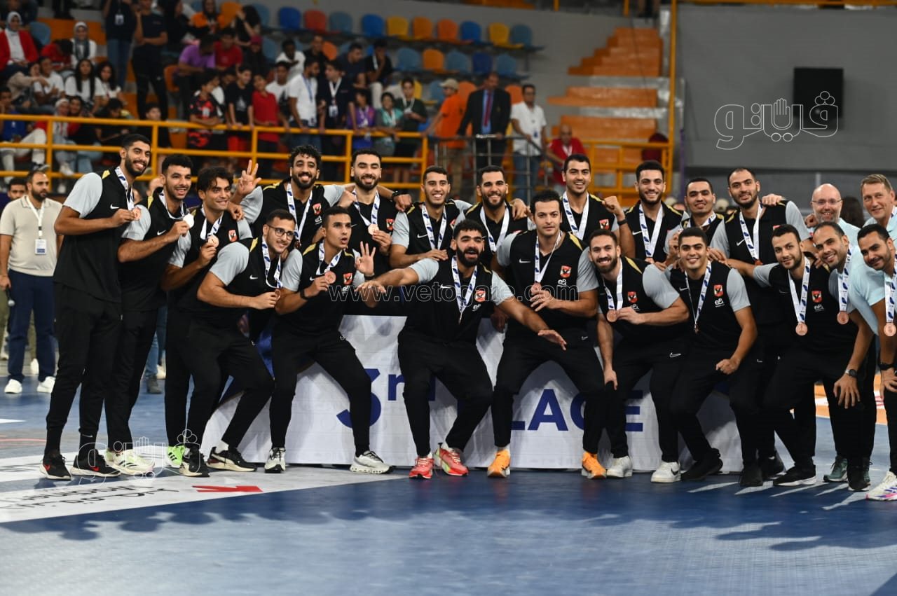 الخطيب يحتفل مع لاعبي الأهلي ببرونزية مونديال اليد (صور)