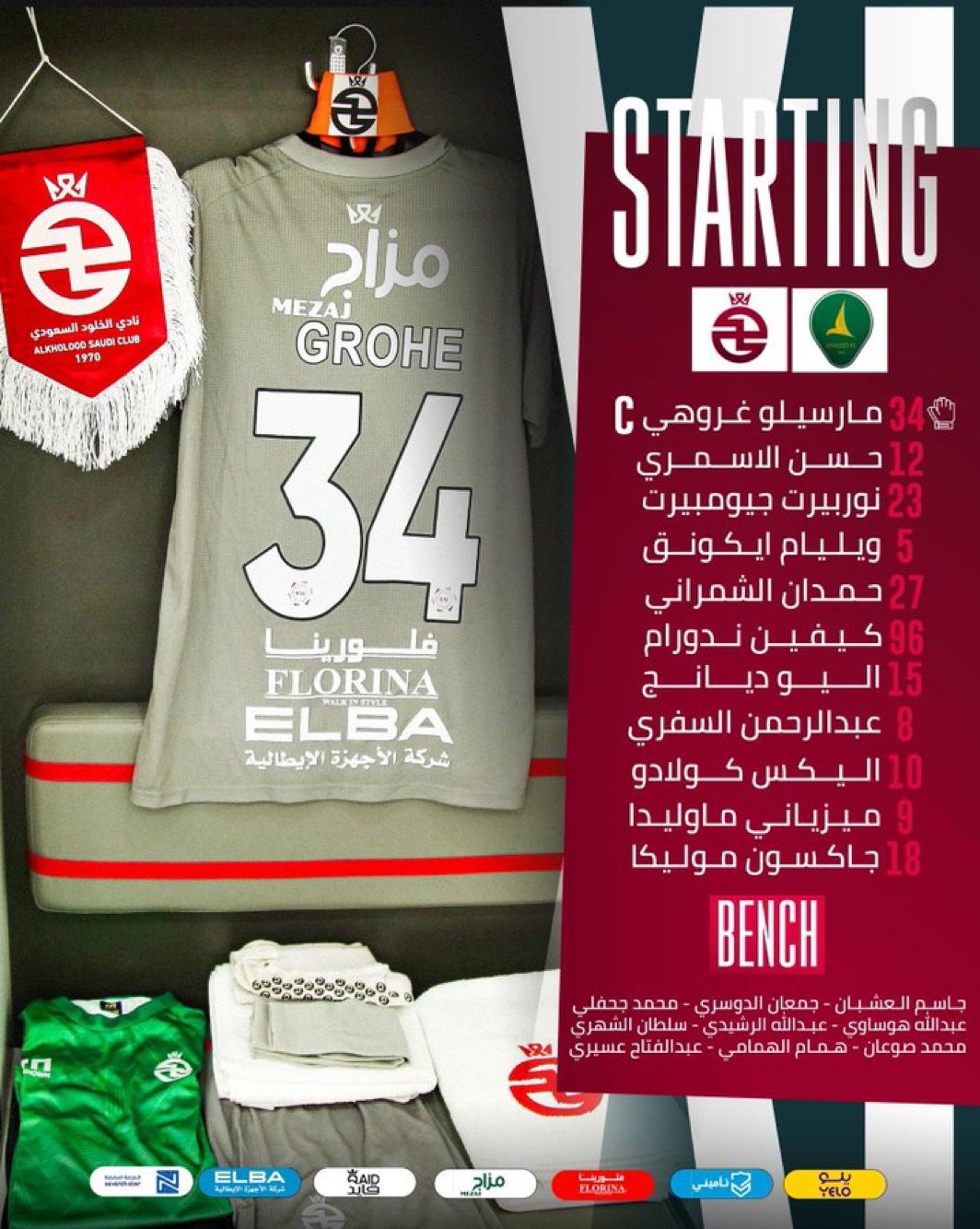 ويغيب المحترف المصري محمد شريف، مهاجم فريق الخليج السعودي أمام الخلود مساء اليوم، لمواصلة برنامج تعافيه من الإصابة العضلية التي تسببت في غيابه عن الفريق الفترة الماضية.