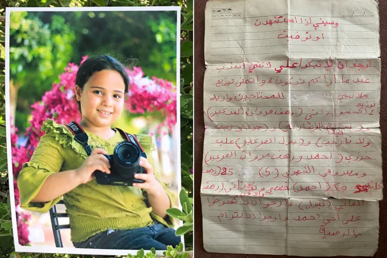 وصية طفلة فلسطينية استشهدت في قصف إسرائيلي