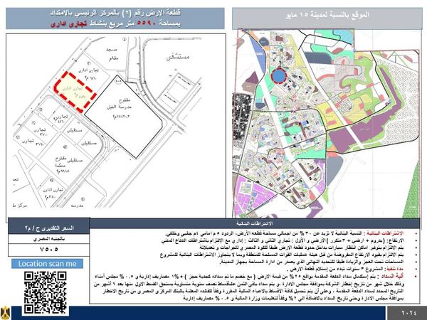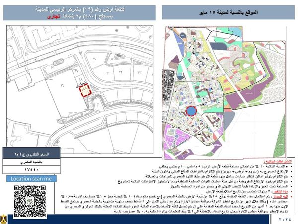 وأفاد المهندس علي محمد سعد على، رئيس جهاز مدينة 15 مايو بأن جهاز المدينة طرح عدد (9) قطعة أرض استثمارية.
