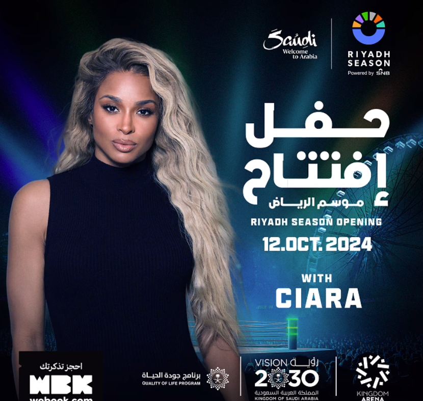 تفتتح الفنانة العالمية سيارا موسم الرياض في نسخته الجديدة والذي من المفترض انطلاقة بالمملكة العربية السعودية يوم 12 أكتوبر الجاري والذي يتضمن العديد من الفعاليات في مختلف المجالات.
