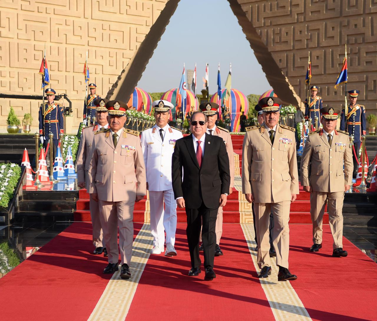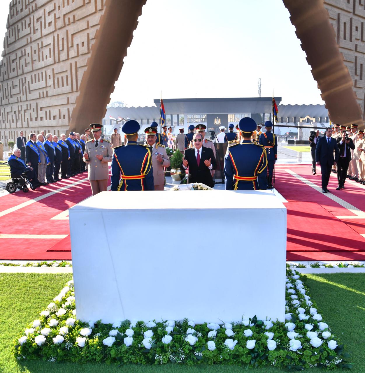 قام الرئيس عبد الفتاح السيسى رئيس الجمهورية القائد الأعلى للقوات المسلحة يرافقه الفريق أول عبد المجيد صقر القائد العام للقوات المسلحة وزير الدفاع والإنتاج الحربى والفريق أحمد خليفة رئيس أركان حرب القوات المسلحة بوضع إكليل الزهور على النصب التذكارى لشهداء القوات المسلحة بمدينة نصر، وعزفت الموسيقات العسكرية سلام الشهيد فى تقليد عسكرى أصيل وفاءًا لشهداء مصر الأبرار، وذلك فى إطار احتفالات مصر والقوات المسلحة بالذكرى الحادية والـخمسين لإنتصارات أكتوبر المجيدة لعام 2024.
