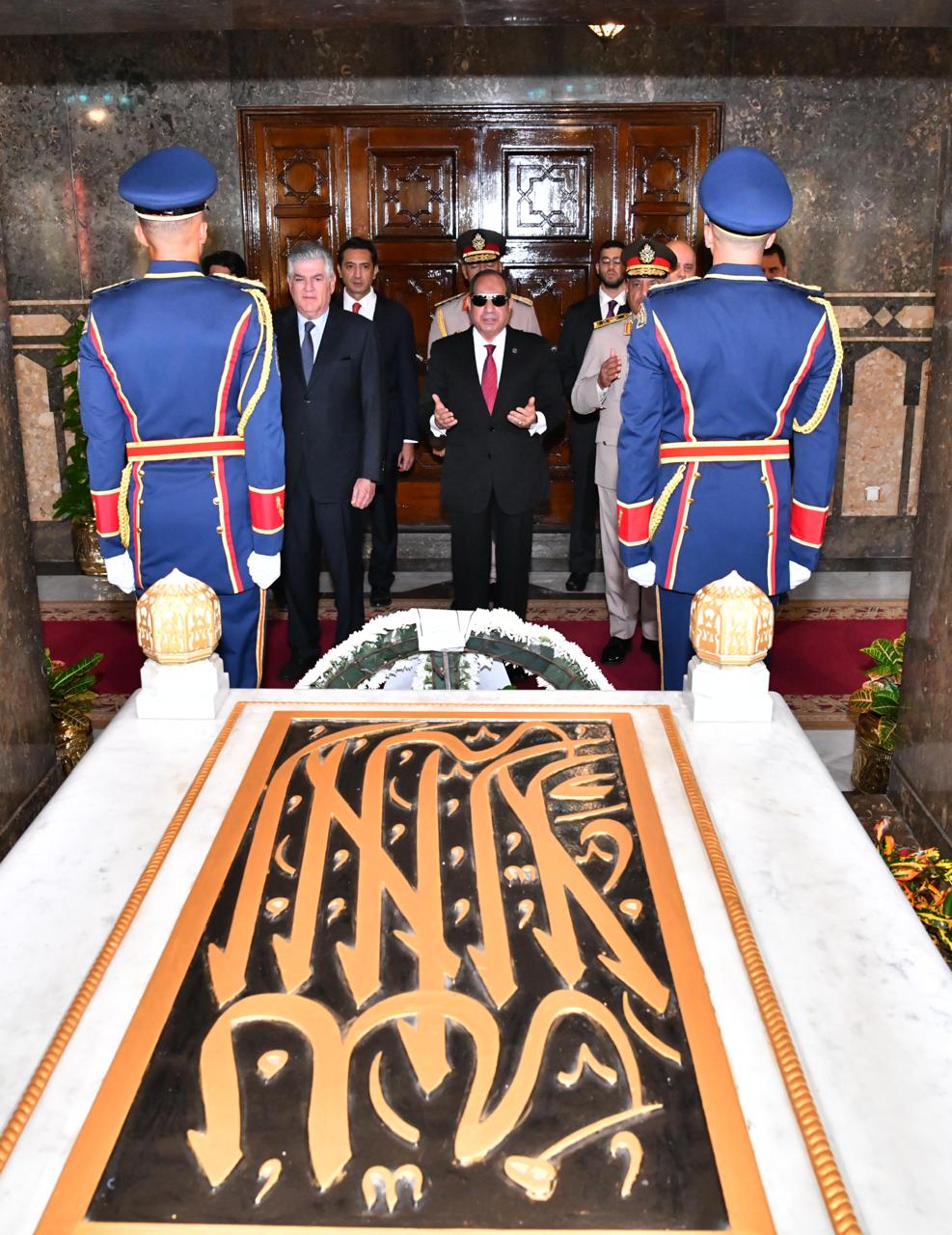 السيسي يضع إكليل الزهور على النصب التذكارى للجندى المجهول وضريحي ناصر والسادات (صور)