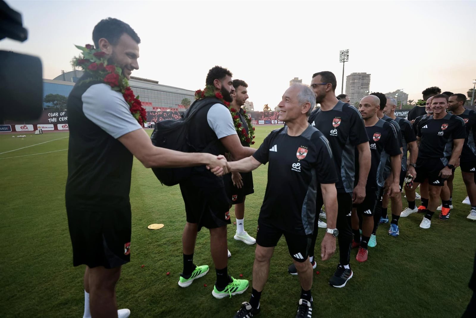 واحتفى لاعبو فريق الكرة وأعضاء الجهاز الفني بلاعبي فريق كرة اليد بعد هذا الإنجاز الكبير، وطوقوا أعناقهم بباقات الورود، وتم التقاط الصور التذكارية وسط حضور كبير من براعم وقطاعات الناشئين لكرة اليد وكرة القدم بالنادي في مدرجات التتش.