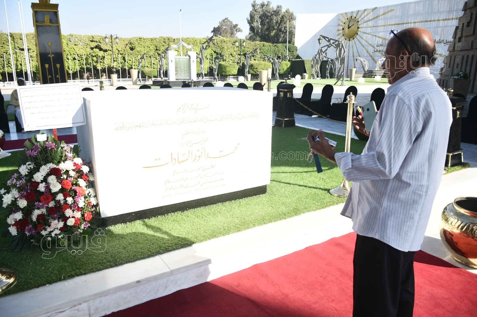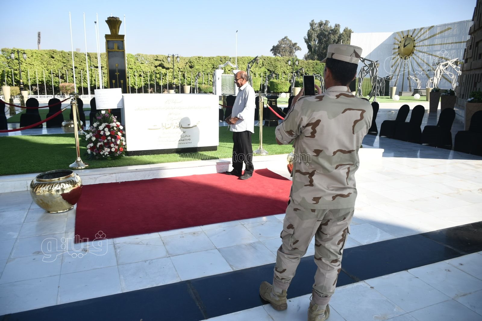 احتفل عدد من المواطنين بذكرى نصر أكتوبر المجيد أمام النصب التذكاري للجندي المجهول بمدينة نصر وضريح الرئيس الراحل أنور السادات.