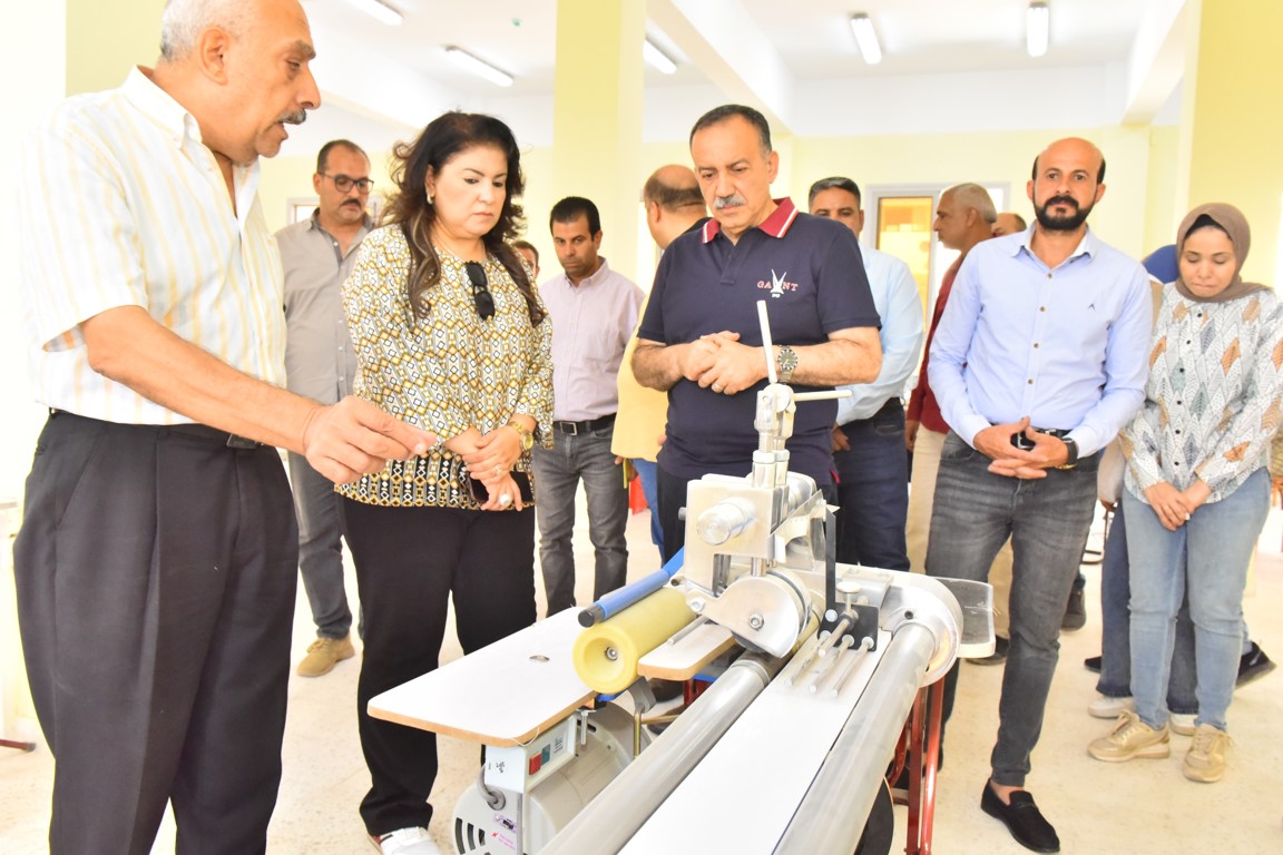 وحرص المحافظ – خلال الجولة – على تفقد أقسام المجمع وتابع تشغيل مشغل الخياطة والتطريز بالدور العلوي واستمع إلى شرح من مديرة فرع هيئة تنمية الصعيد عن الماكينات والمعدات المختلفة الموجودة بمشغل الخياطة والتطريز من ماكينات خياطة، وعراوى، وسرفلة، وتركيب أزرار، ومقص كهربائي ومكواة بخار.