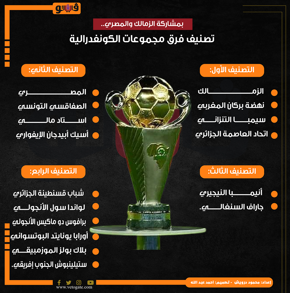 بمشاركة الزمالك والمصري.. تصنيف فرق مجموعات الكونفدرالية (إنفوجراف) الأحد 06/أكتوبر/2024 - 03:46 م 10/6/2024 3:46:30 PM الكونفدرالية محمود درويش شارك طباعة 18 حجم الخط شارك طباعة الزمالك الكونفدرالية مجموعات الكونفدرالية قرعة الكونفدرالية نهضة بركان المغربي سيمبا التنزاني