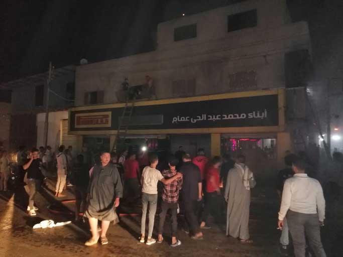 انتقلت قوة أمنية وسيارتي إطفاء من قوات الحماية المدنية وسيارة إسعاف الي محل الواقعة وتبين اندلاع حريق داخل محل الحدايد والبويات ومصرع طفل يدعي "محمد.ر.ال"12 عاما.