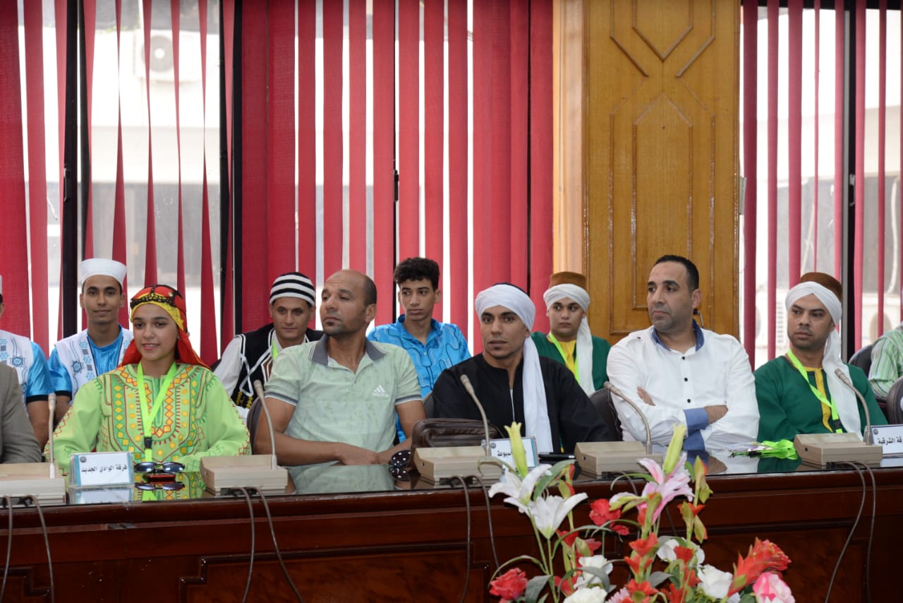 محافظ الإسماعيلية يستقبل رؤساء الوفود المشاركة بمهرجان الفنون الشعبية (صور)