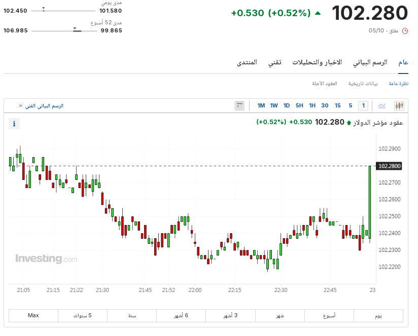 مؤشر الدولار، حالة من الصعود الحذر تسيطر على مؤشر الدولار خلال حركة التداولات العالمية، بعد الهبوط الأخير في المؤشر خلال الأسابيع الماضية، نتيجة قرار الفيدرالي الأمريكي، ليلامس مؤشر الدولار مستوى 102.280 نقطة للبيع بحركة التداولات العالمية.