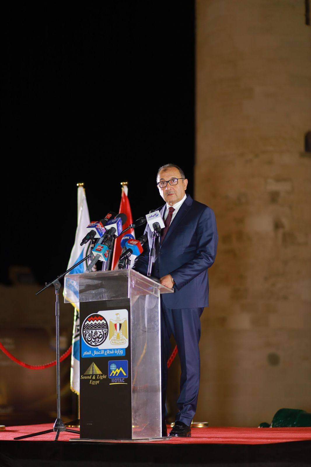 وزير قطاع الأعمال ومحافظ الإسكندرية يشهدان افتتاح عروض "الصوت والضوء" بقلعة قايتباي