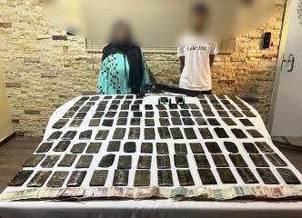 وضبط (سيدة ) بدائرة قسم شرطة المعصرة، وبحوزتها ( عدد من الأقراص المخدرة المتنوعة)، وضبط (عنصرين إجراميين "لهما معلومات جنائية")، وبحوزتهما (6 كيلو جرام من مخدر الحشيش).