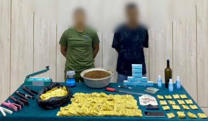 وعُثر بحوزتهما على (4 كيلو جرام لنبات الشادو لمخدر – عدد من الأقراص والأدوات والأجهزة المستخدمة فى عملية التصنيع)،