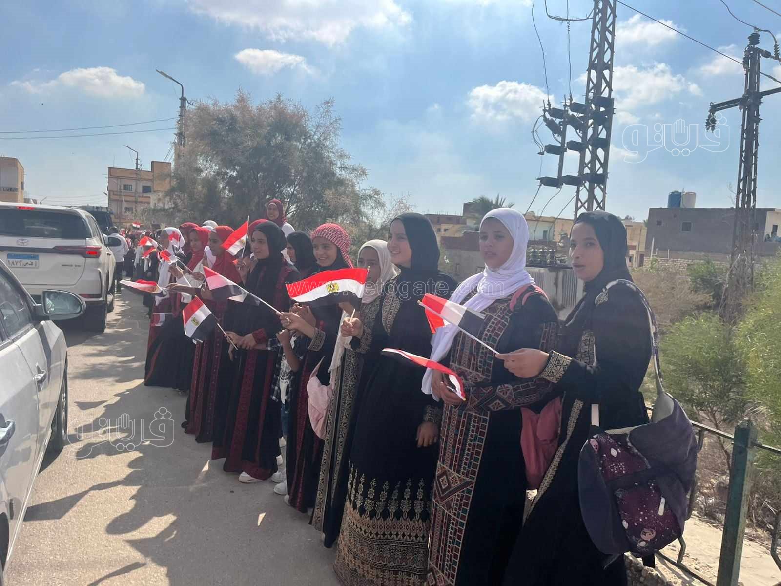 استقبل العشرات من أهالي مدينة بئر العبد في شمال سيناء وزير النقل اللواء كامل الوزير بالزغاريد والزي السيناوي ملوحين بأعلام مصر.