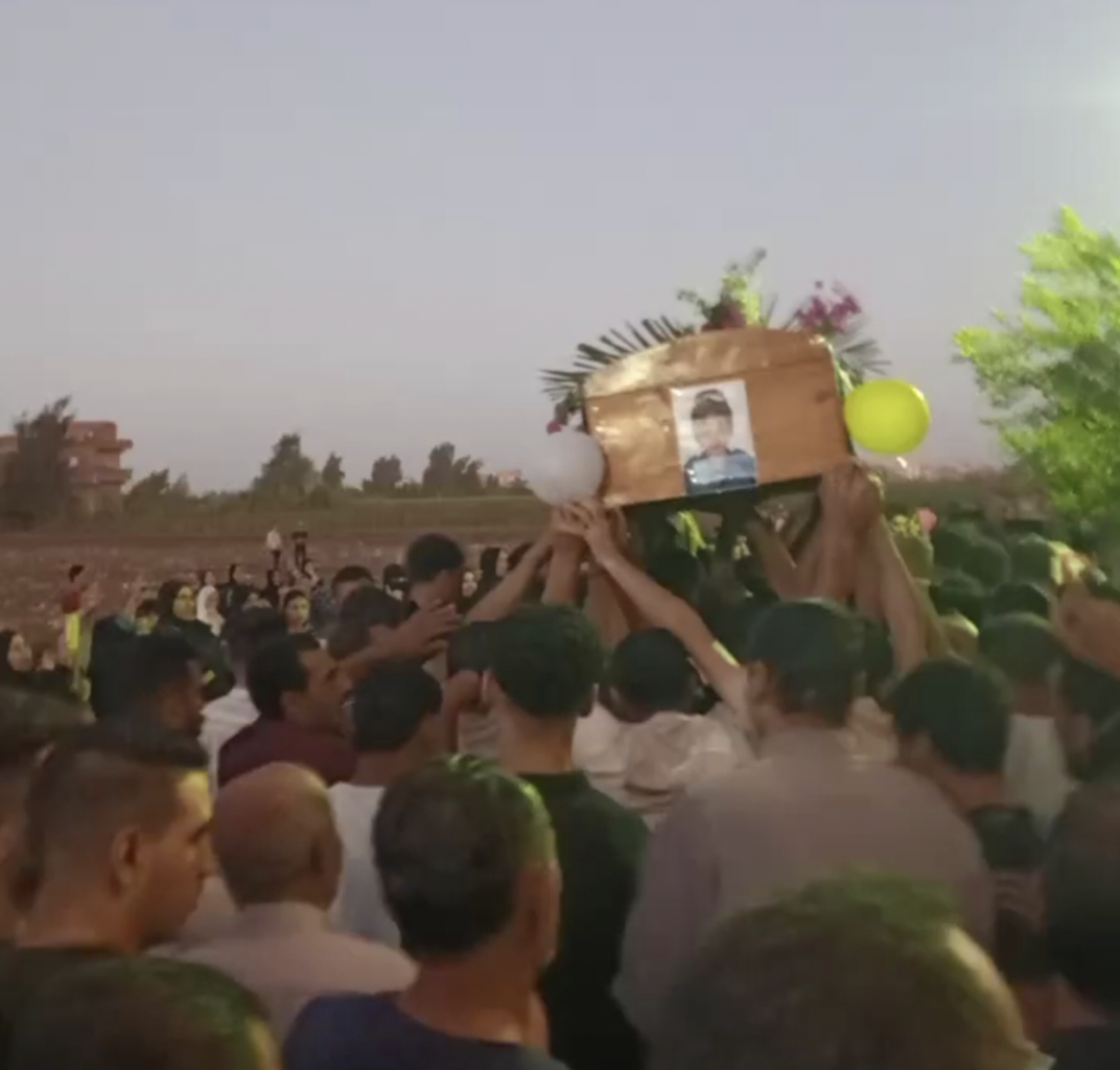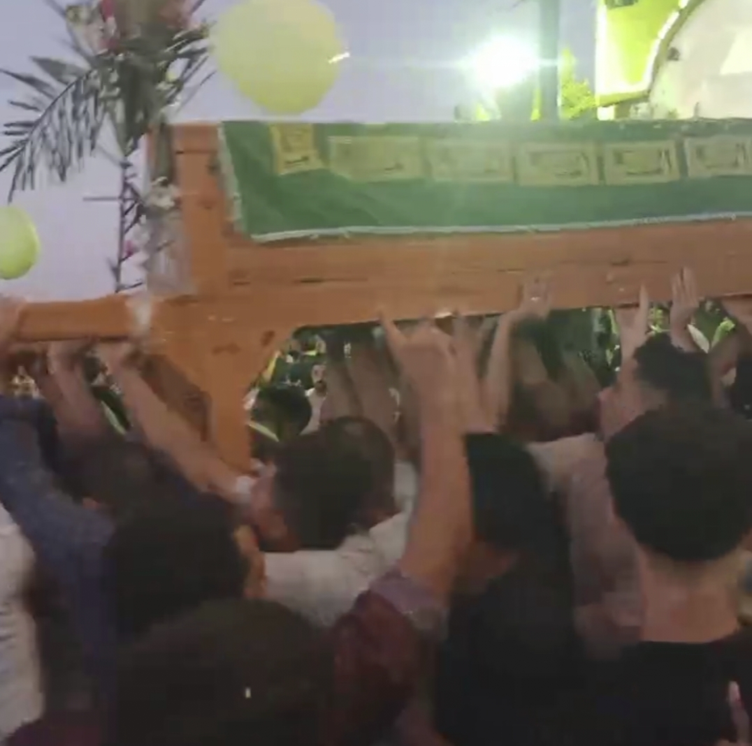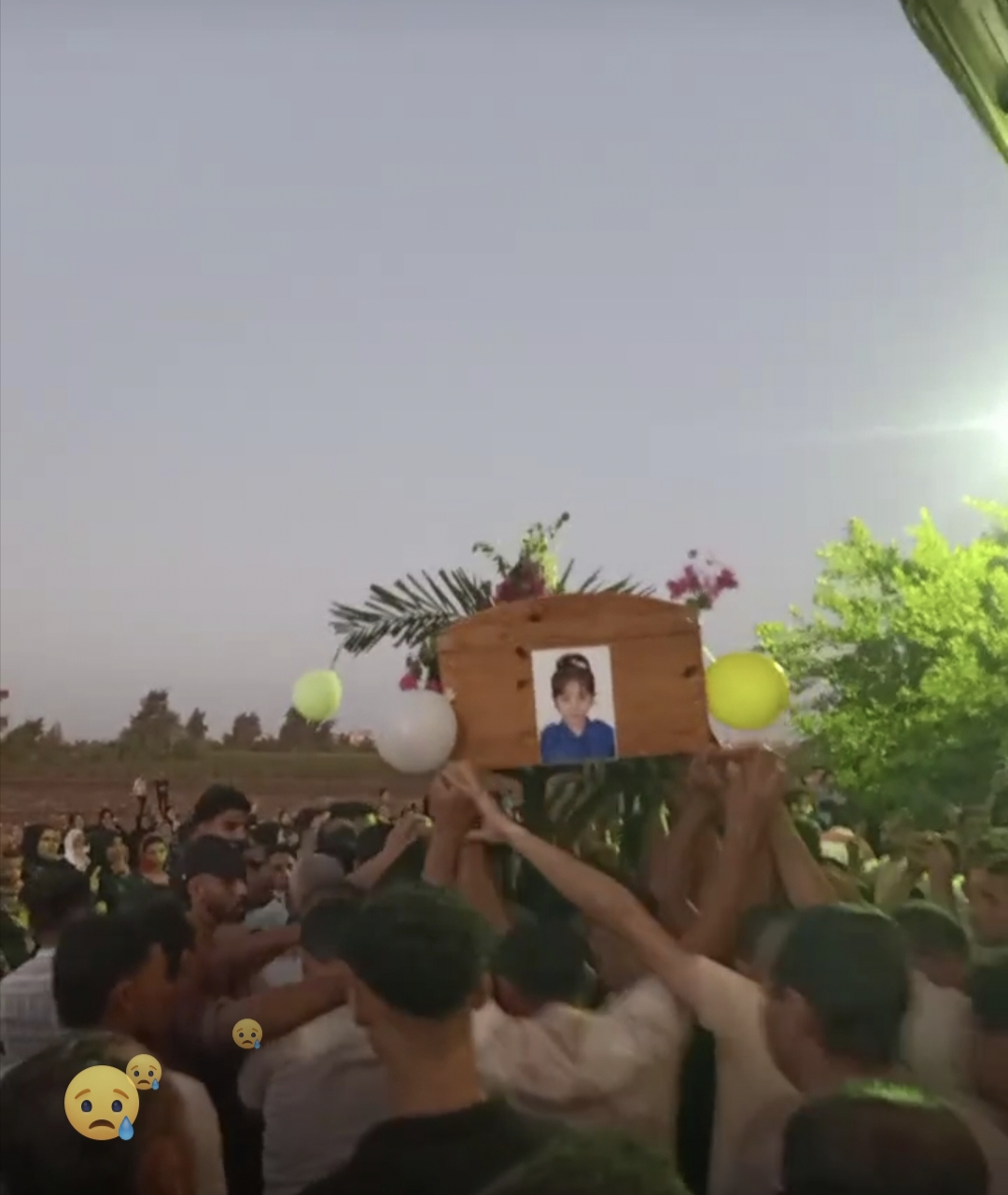 وتعالت الزغاريد في الوداع الأخير للطفلة خلال نقل جثمانها من مسجد العزبة إلى مقابر العائلة، وزينوا نعشها بالبلالين وجريد النخل والورود وصورة الطفلة.