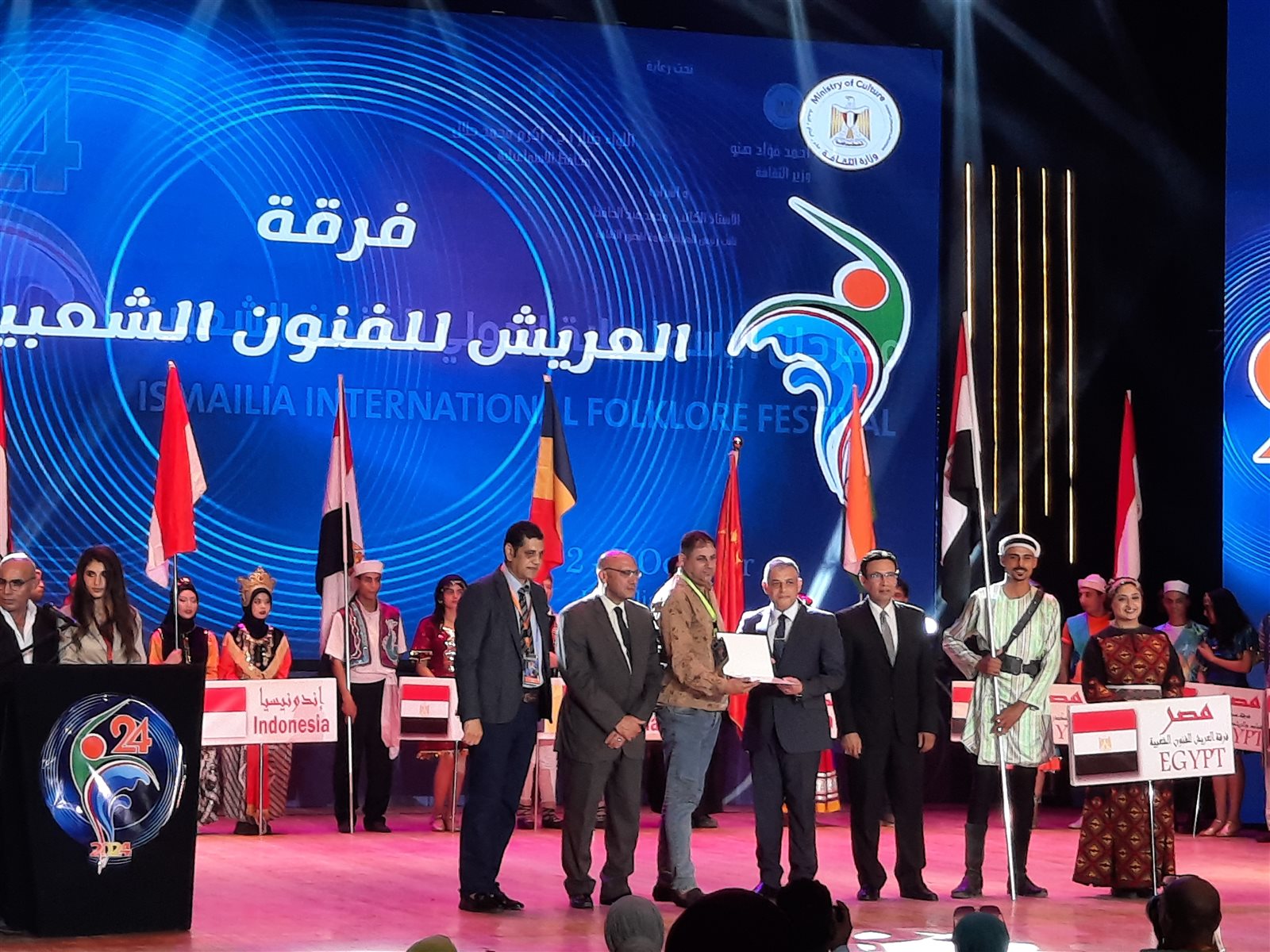 ثم تكريم اللواء أكرم محمد جلال محافظ الإسماعيلية، يرافقه كل من الكاتب محمد عبد الحافظ ناصف نائب رئيس الهيئة العامة لقصور الثقافة والفنان ماهر كمال للفرق المشاركة بالمهرجان.