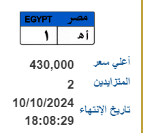 كما طرحت اللوحة “ف أ ر 1” بسعر 455 ألف جنيه ويتنافس عليها شخصان.